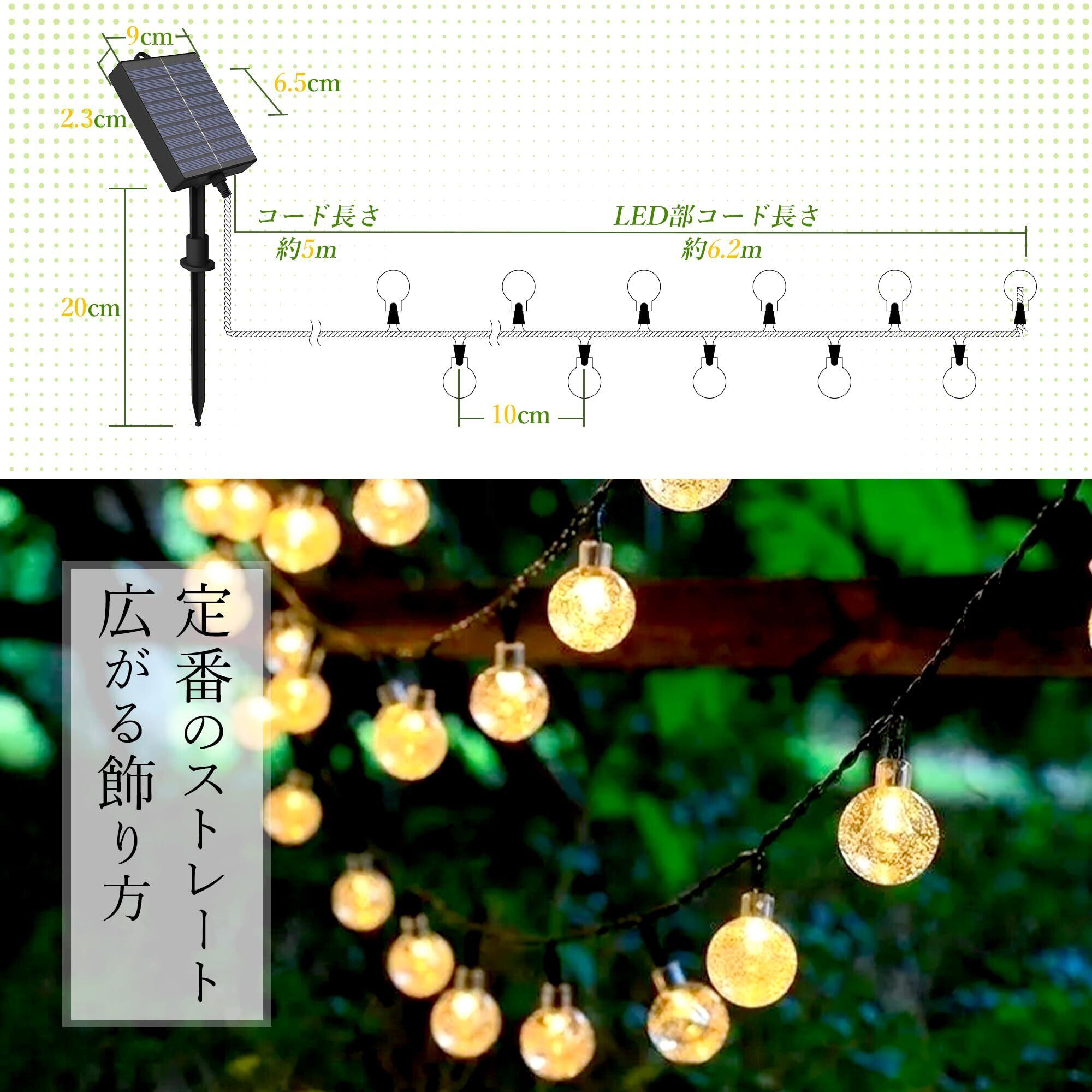 ソーラー イルミネーション 6.2m 62球 バブル ボール ストレート IP65 防水 8モード 夜間自動 点灯 クリスマス ハロウィン パーティー バレンタインデー 新年 祝日 結婚式 誕生日 学園祭 屋外 室内 庭対応 ソーラーパネル 大容量 飾りライト ソーラー 防水 防雨 クリスマスツリー DIY LEDライト 電飾 装飾ライト フェアリーライト (シャンパンゴールド)