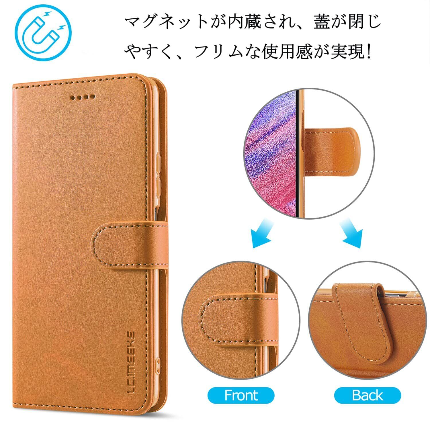 【高級PUレザーメ 柔らかいTPU】肌感PUレザー +柔軟なTPUカバーと組み合わせ、厳選された革を採用しており、目に見える高級感と抜群な、肌のような手触り感、長時間使っても、手に汗が出てもケースは変なにおいが出てきません。スマホ本体はめ込み部分はな柔らかいTPU(シリコン)ケースです。TPU素材を使用したソフトカバーにより、軽量と耐衝撃を兼ね備えました。また、柔らかいTPUカバーは取り付け・取り外しが簡単で、スマホ本体への損傷の心配ありません。