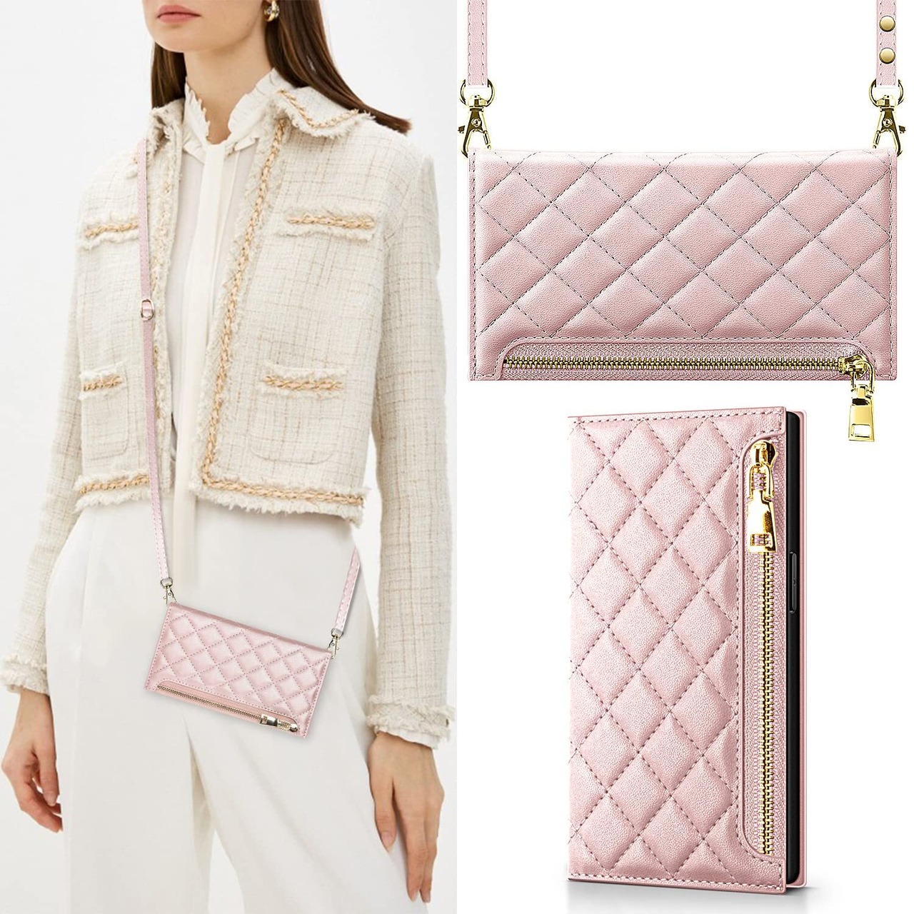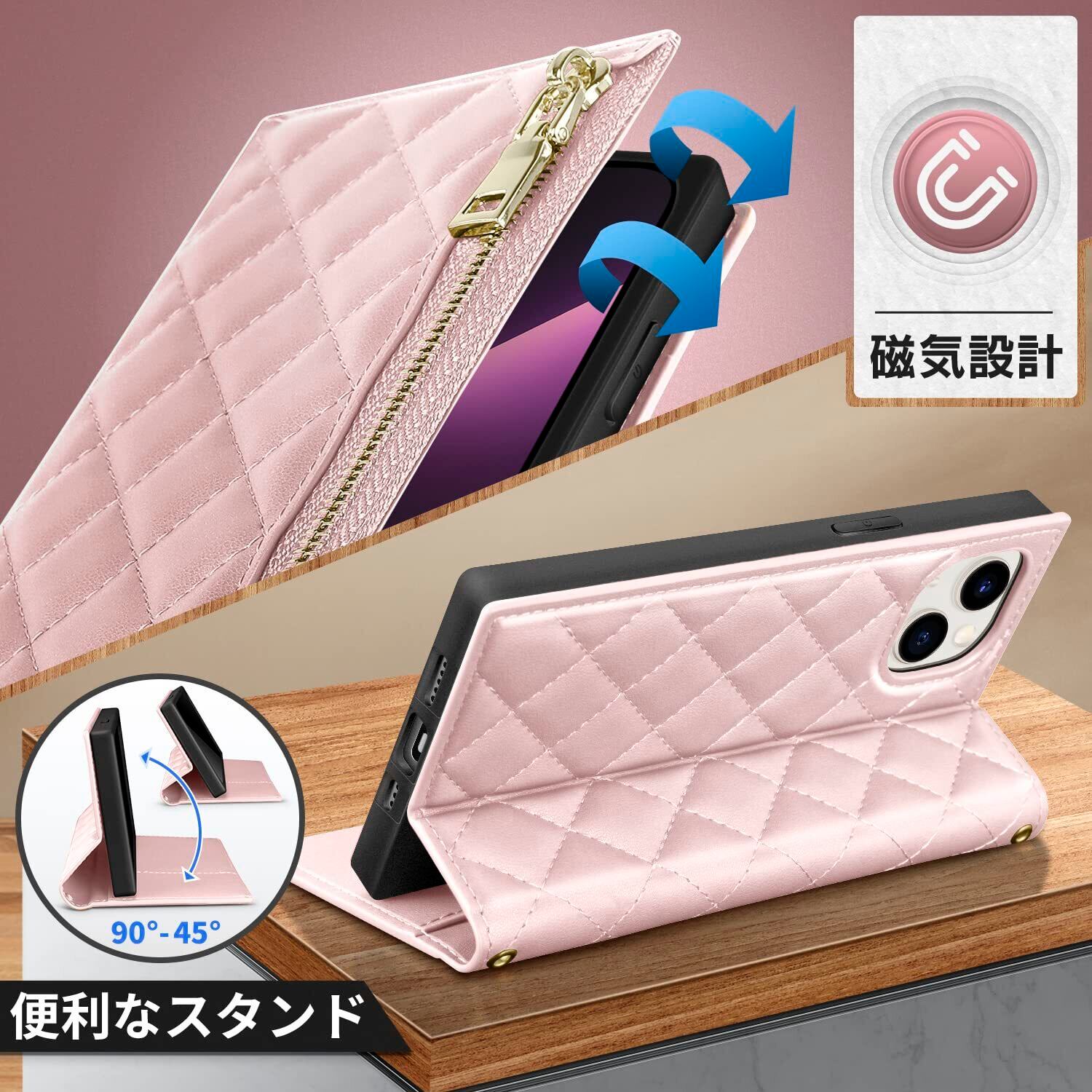 【エレガントなデザイン&便利な収納】上質なPUレザーにダイヤモンドチェック柄×ゴールドメタルジップ を組み合わせた、高級感あふれるデザイン。外側には ジップ付き小銭入れ、内側には 2つのカード収納ポケット を搭載し、キャッシュレス派の方にも最適です。財布を持ち歩かず、スマホひとつでお出かけできる便利さを実感してください。ファッション性と機能性を両立した、女性向けのスタイリッシュなスマホケース です。