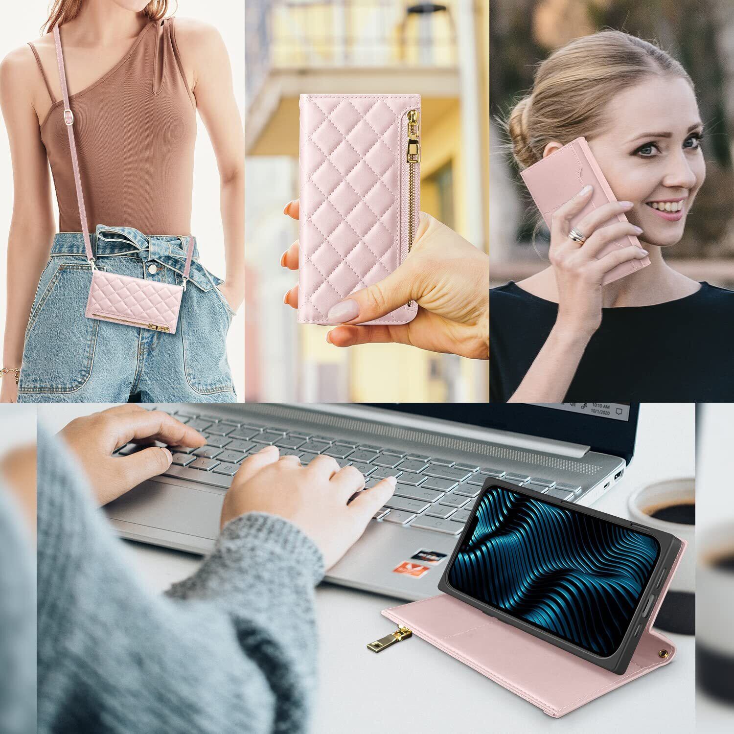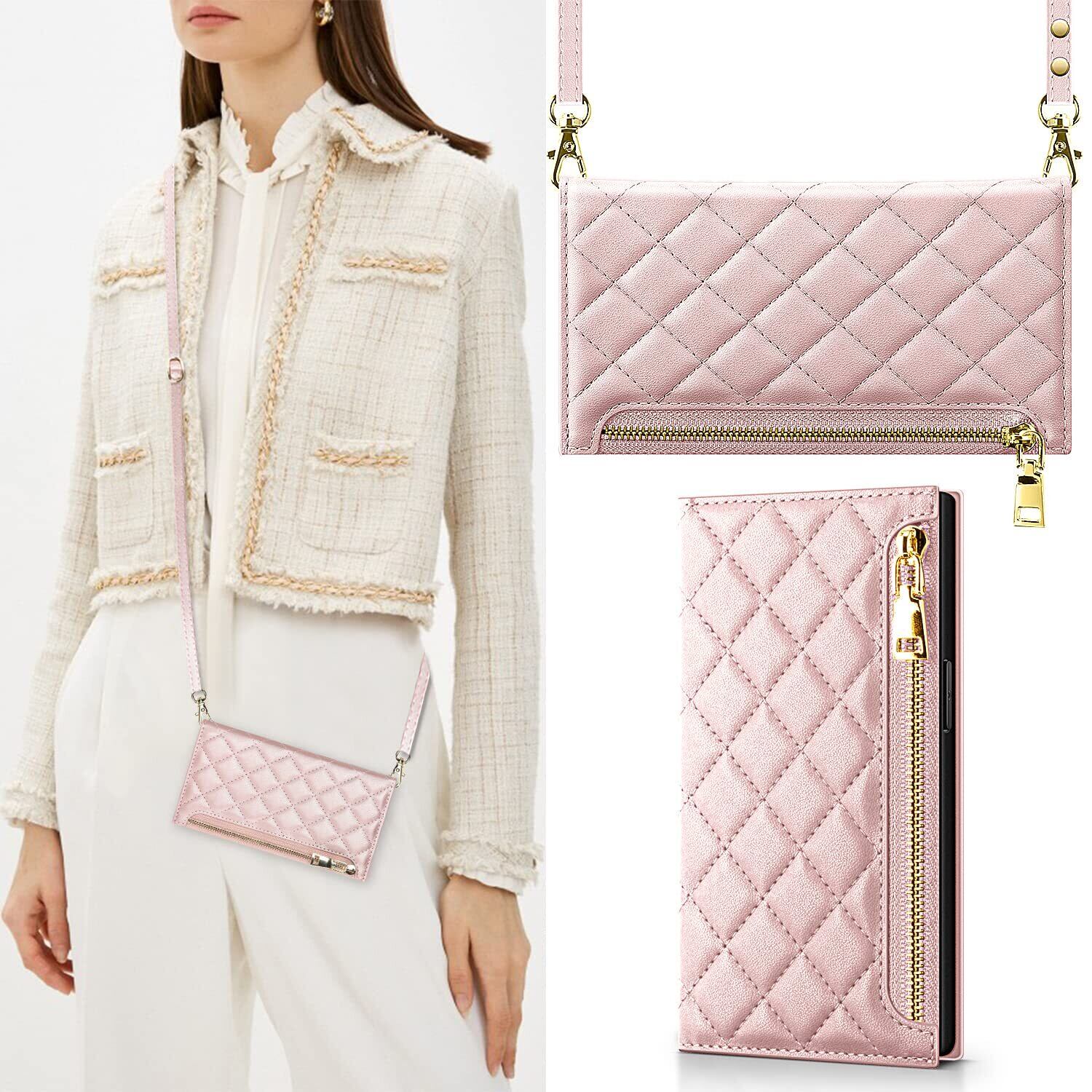 NODALA iPhone 14 ケース 手帳型 ショルダー付き 斜めがけ PUレザー 財布型カバー レディース用 おしゃれ 長さ調整可能 ロングストラップ カード収納 小銭入れ付き スタンド機能 耐衝撃 アイフォン14対応 ローズゴールド