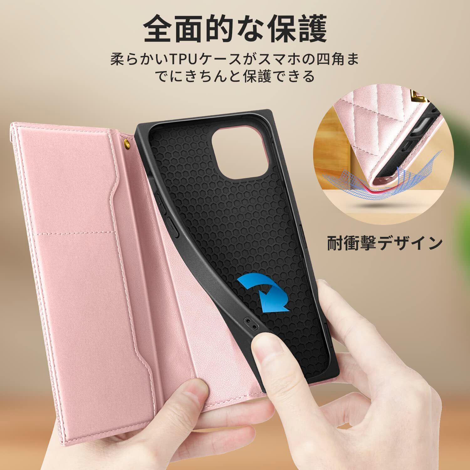 【高品質PUレザー&耐衝撃設計】耐衝撃性・耐摩耗性に優れた PUレザー素材 を使用。手触りが柔らかく、上品な質感が魅力です。内側は スクエア型TPUインナーケース でスマホをしっかり固定し、衝撃や落下から保護。TPU特有の弾力性があるため、衝撃吸収力も抜群です。デザイン性と実用性を兼ね備えた、長く愛用できるスマホケースです。