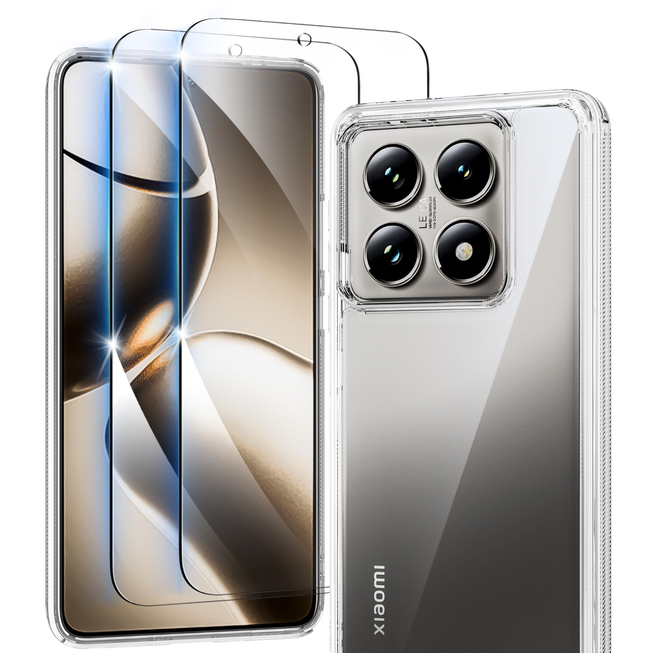 Xiaomi 14T Pro ケース + ガラスフイルム付き(2枚) クリア 保護ケース 黄変防止 保護フィルム 強化ガラス 耐衝撃 米軍MIL規格 SGS認証 ワイヤレス充電対応 ストラップホール付き シャオミ14T Pro 対応