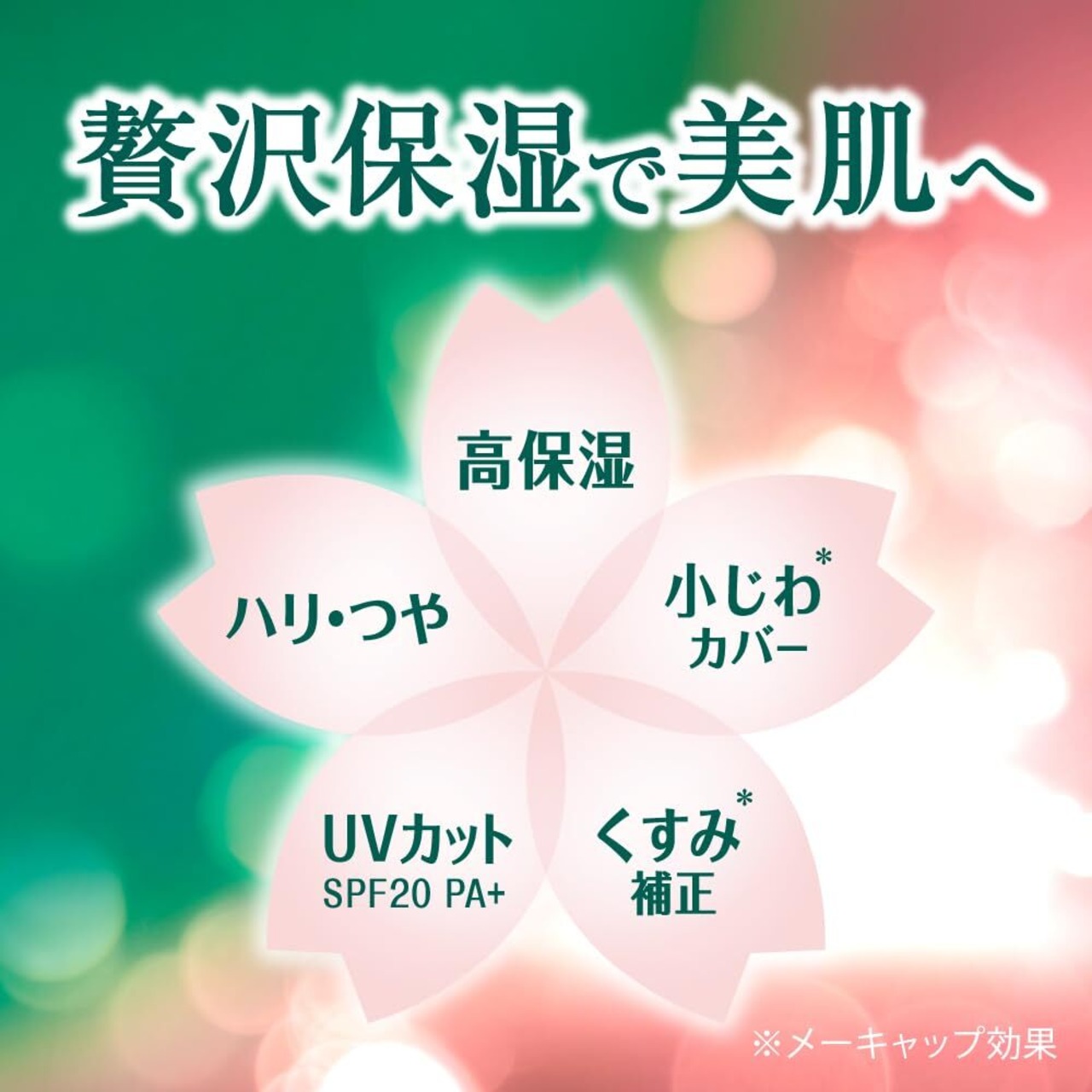 桜色のクリームが小じわを目立たせず、くすみを補正して明るい手肌に整えます(光拡散パウダーによるメーキャップ効果)。