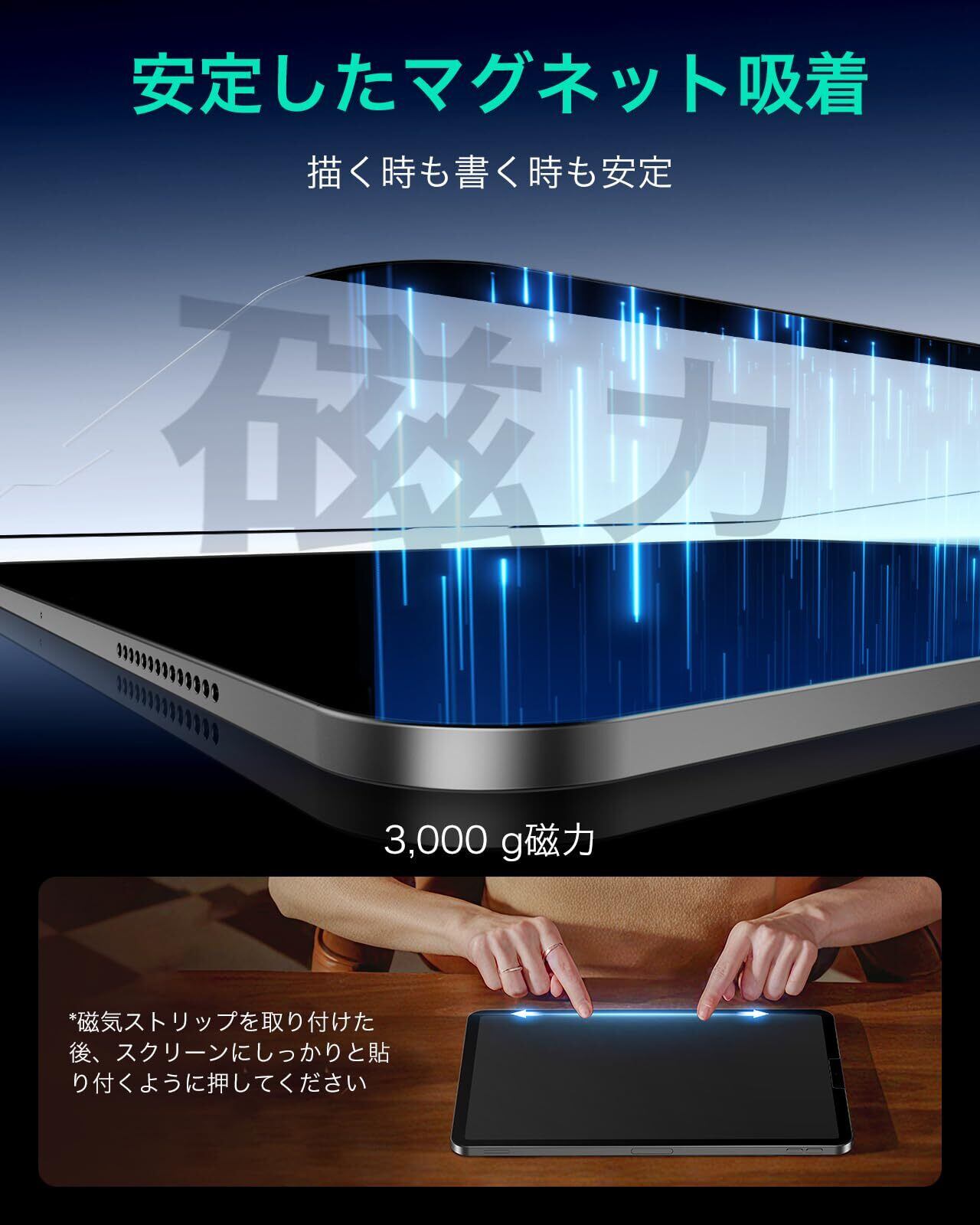 【便利な磁気吸着】画面のプライバシーを保護したい時は磁気フレームでiPad画面にワンタッチで取り付けられ、使用後は簡単に取り外して、元の画面が楽しめます。