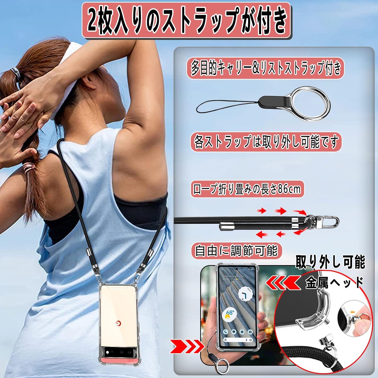 OJBSEN Google Pixel 6 ケース スマホケース ピクセル 6 カバー [ストラップ2枚付き] 調節可能な ショルダー 肩がけ 首掛け 紐付き ストラップホール付き 薄型 透明 PC + 軽量 シリコン TPUバンパー カバー [耐衝撃 Qi充電 ワイヤレス充電 傷防止 全面保護 米軍MIL規格 防指紋 カメラ保護] Google Pixel 6 ケース (クリア)