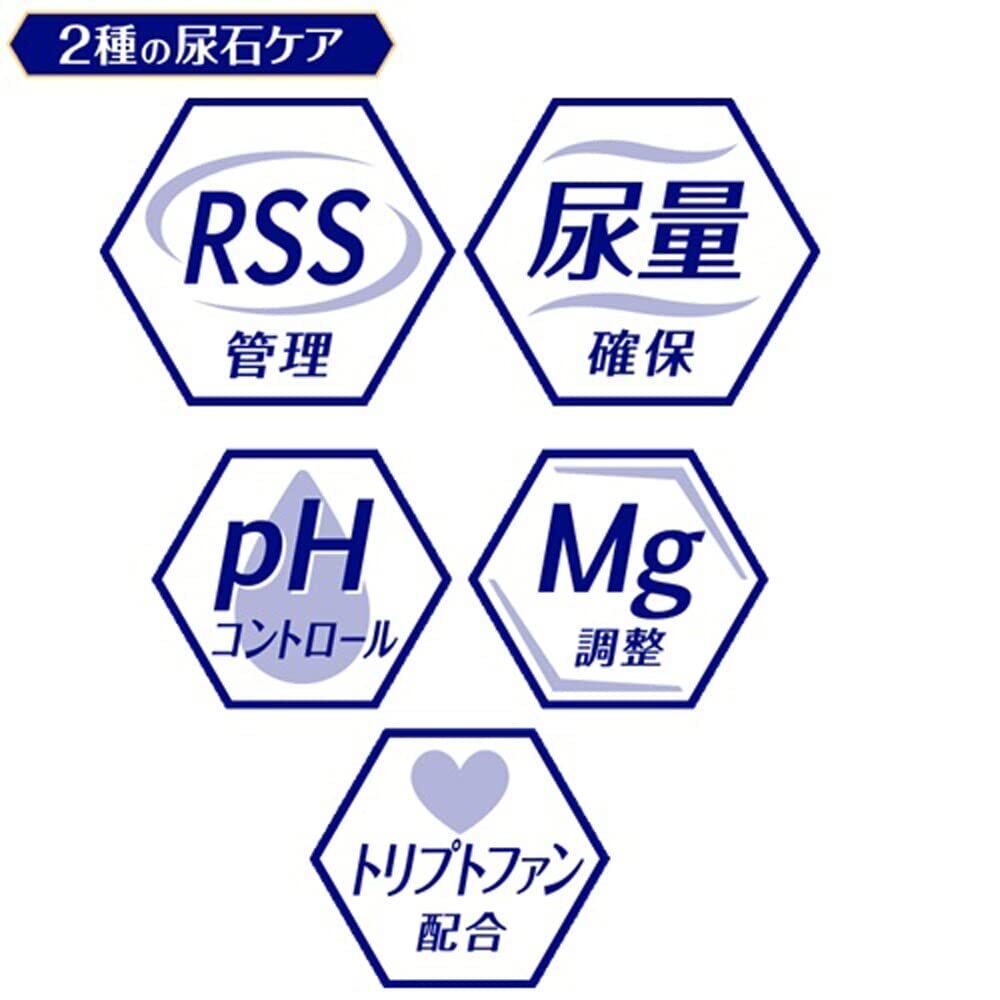 ストルバイト尿石だけでなく、シュウ酸カルシウム尿石にも配慮! 原材料・成分 たんぱく質・・・36%以上、脂質・・・11.5%以上、粗繊維・・・4%以下、灰分・・・11.5%以下、水分・・・10%以下、カルシウム・・・1.1%標準値、リン・・・1.1%標準値、ナトリウム・・・0.8%標準値、マグネシウム・・・0.09%標準値、カロリー約370kcal/100g