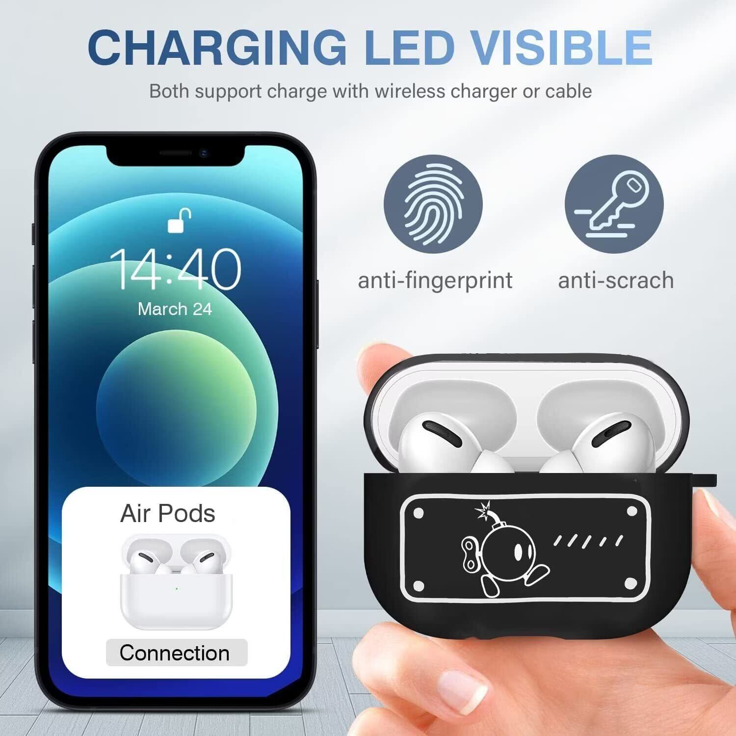 AirPods Pro 2 ケース 第2世代 【2023/2022年モデル】 専用 カバー 二次元スタイル シンプルなスタイル エアーポッズ プロ 2世代 ブラック ケース アップルイヤホン 保護ケース 耐衝撃 防水 防塵 カラビナ・キーチェーン付き(music)