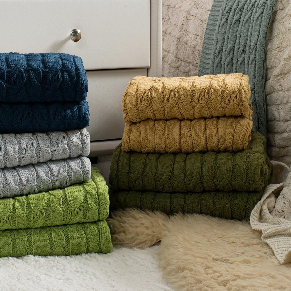 【美観性】ケーブル編みで模様を作り出しています。ケーブル編みはセーターではよく見かける編み方です。この度ブランケットに応用しました。可愛くておしゃれな毛布一枚で、部屋のインテリアが一気に変えられます