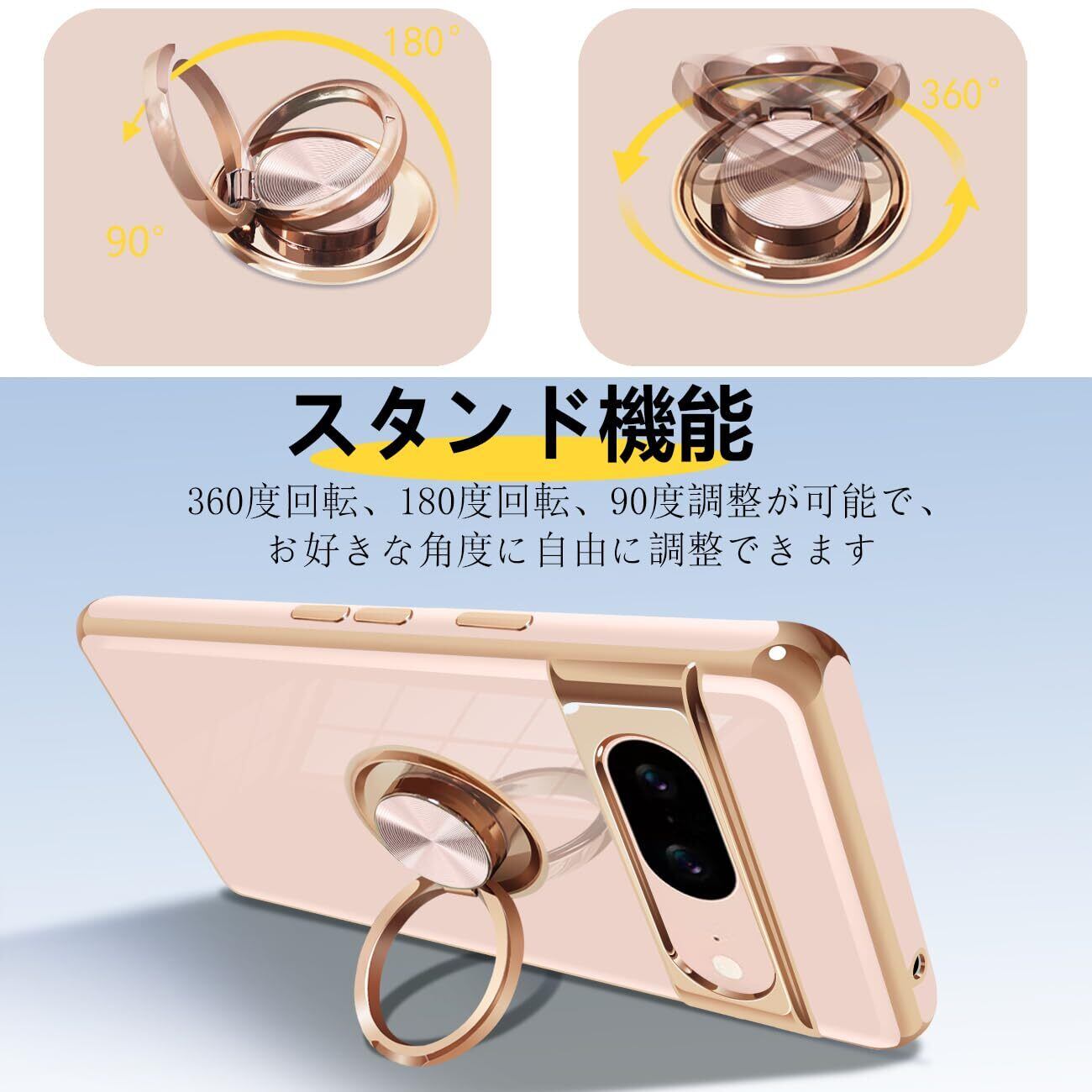 Google Pixel 8 ケース リング付き リング 米軍MIL規格 耐衝撃 ピクセル8 カバー メタリックな質感 磁気吸着 携帯カバー TPU 軽量 人気 スタンド機能 車載ホルダー対応 360°回転 黄変防止 指紋防止(ピンク)