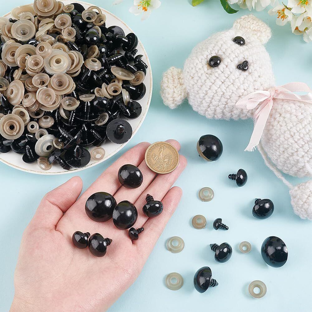 PH PandaHall 90ペア ぬいぐるみ目 人形の目 ドールアイ 8サイズ さし目 さし鼻 テディ目玉 ドールアイクラフト ドールメイキング DIY用 手芸 パーツ 材料 ハンドメイド 縫製 ワッシャー付き ブラック 10~24mm
