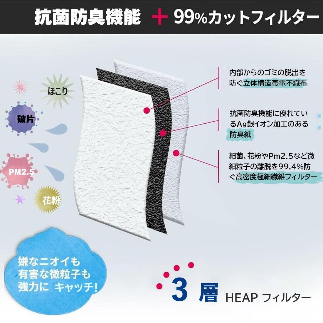 防臭抗菌:純正品と同じ高質防臭紙や活性炭材を採用するので、花粉、ホコリ、砂、PM2.5などのゴミをきちんとにキャッチする上に、抜群な防臭、抗菌機能を果たすことができます。