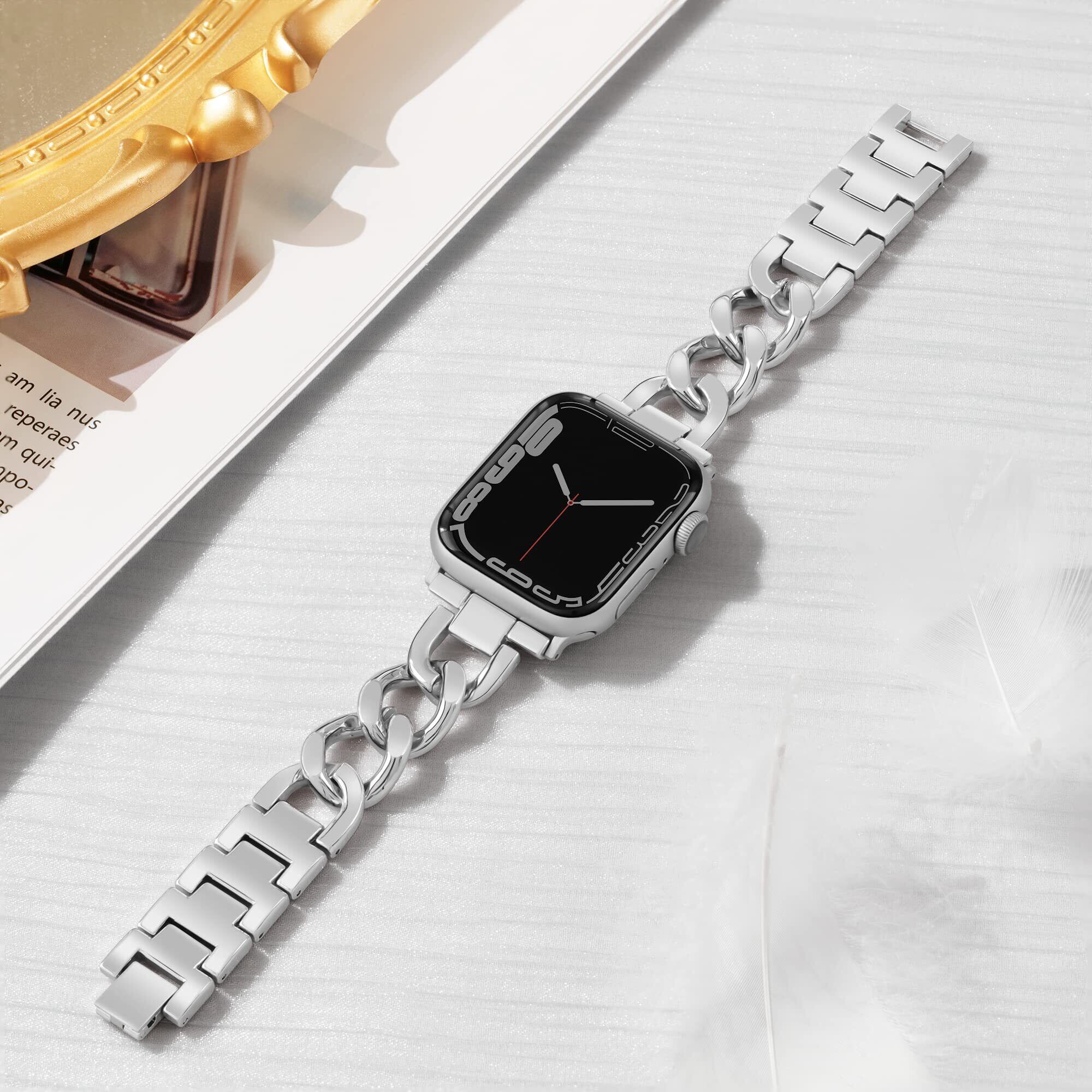「完璧な互換性」このキラキラした女性用apple watchバンドは、Apple Watch series 10、series 9、series 8、series 7、series 6、SE、series 5、series 4、series 3、series 2、series 1に適しています。(このパッケージには、バンド、長さ調整ツール、取扱説明書が含まれています。Apple Watchは含まれていません。)