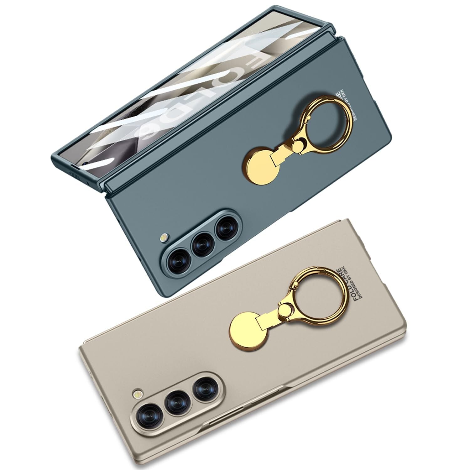 Galaxy Z Fold6 SC-55E SCG28 用 ケース 360度回転スタンドリング ギャラクシーzフォールド6 ケースカバー PET フィルム付 全面保護 galaxyzフォールド6 スマホケース リング SUGOIDAN カバー ストラップホール 薄型 軽量 カメラレンズ保護 ハード リング付き(シルバーシャドウ)
