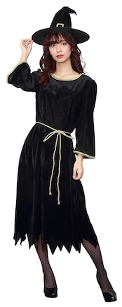 ロング丈でクラシカルな印象が大人っぽい魔女コスチューム。