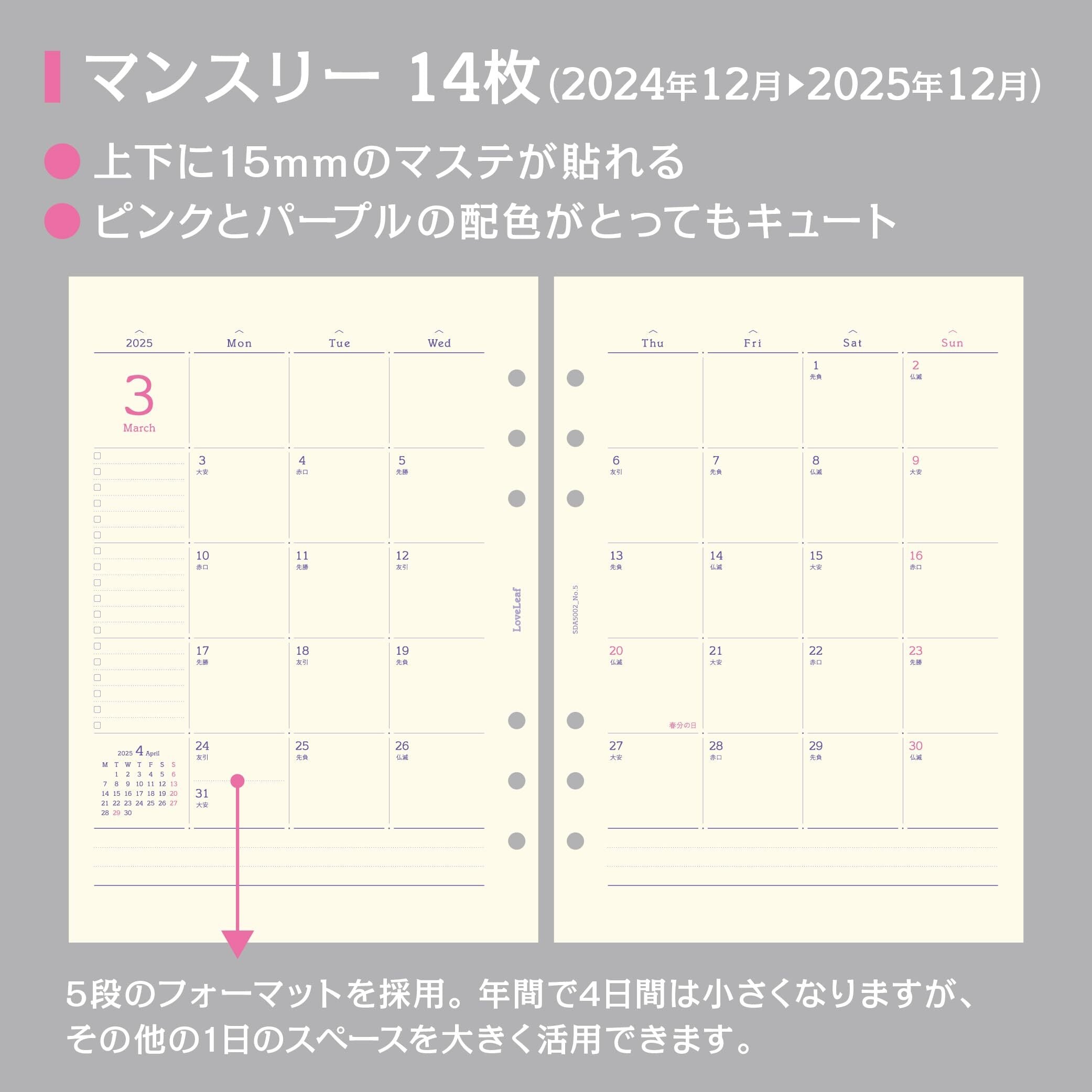 ラブリーフ システム手帳 リフィル 2025年 A5 マンスリー 月間ブロック (2024年 12月始まり) + LOVEドット方眼 SDA5002