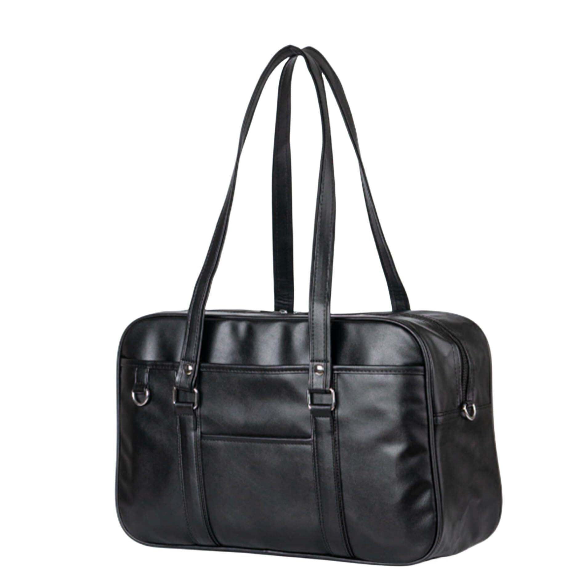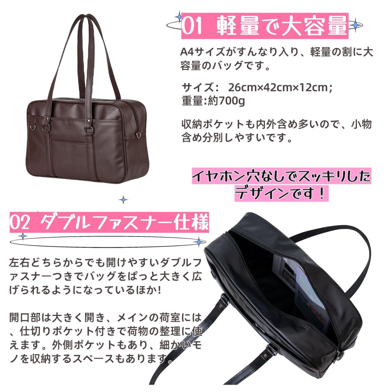 [YOBLUELO] スクールバッグ 革 スクバ 合皮 女子 高校生 大容量 肩紐長い イヤホンマークなし 茶色 黒 背負える