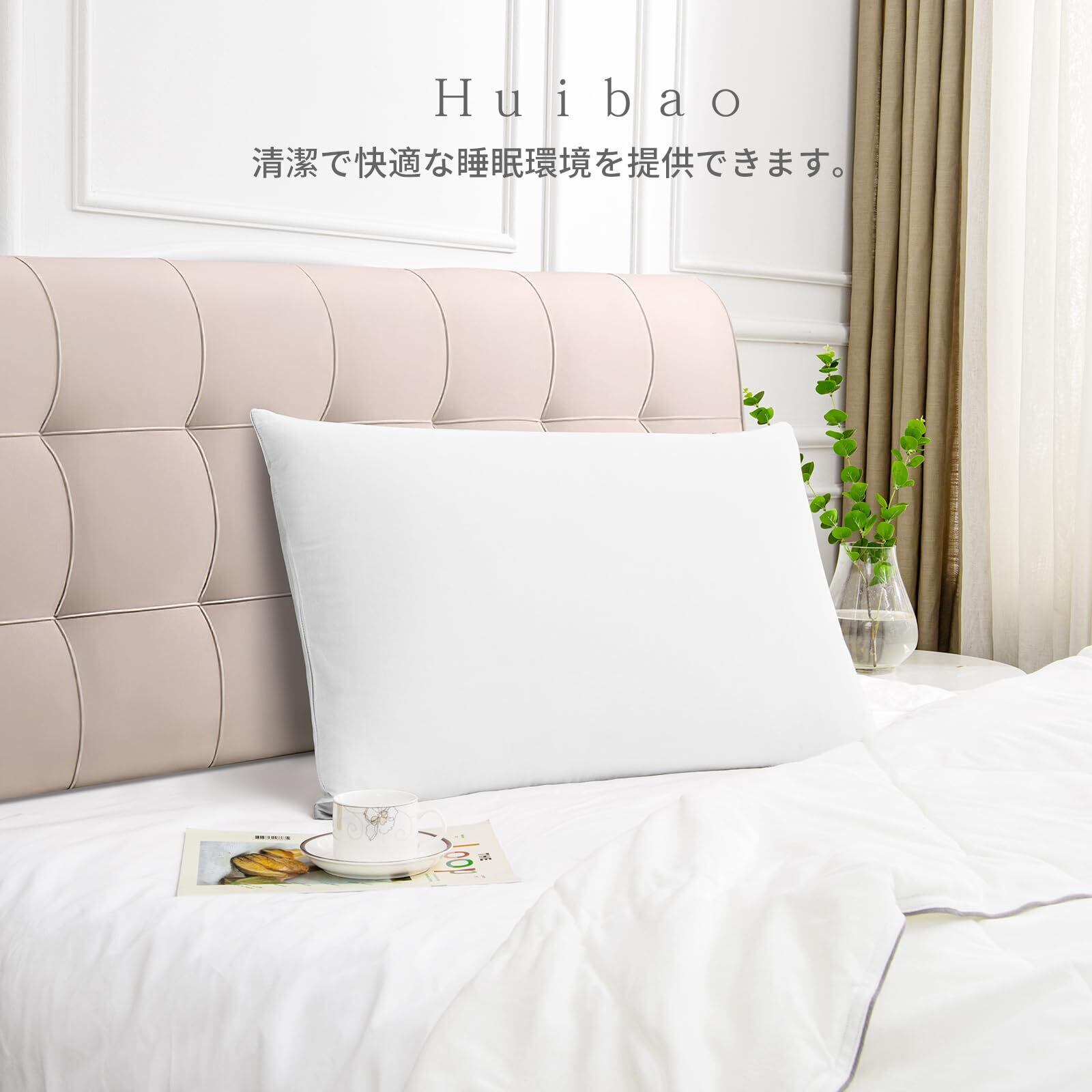 Huibao 枕カバー 43 63 高級綿100% 300本高密度生地 コットン ピローケース ホテル品質 封筒式 通気 抗菌防臭 ダニ防止 無地 柔らかい 洗える 選べる13色 オールシーズン(43×63cm,ホワイト)