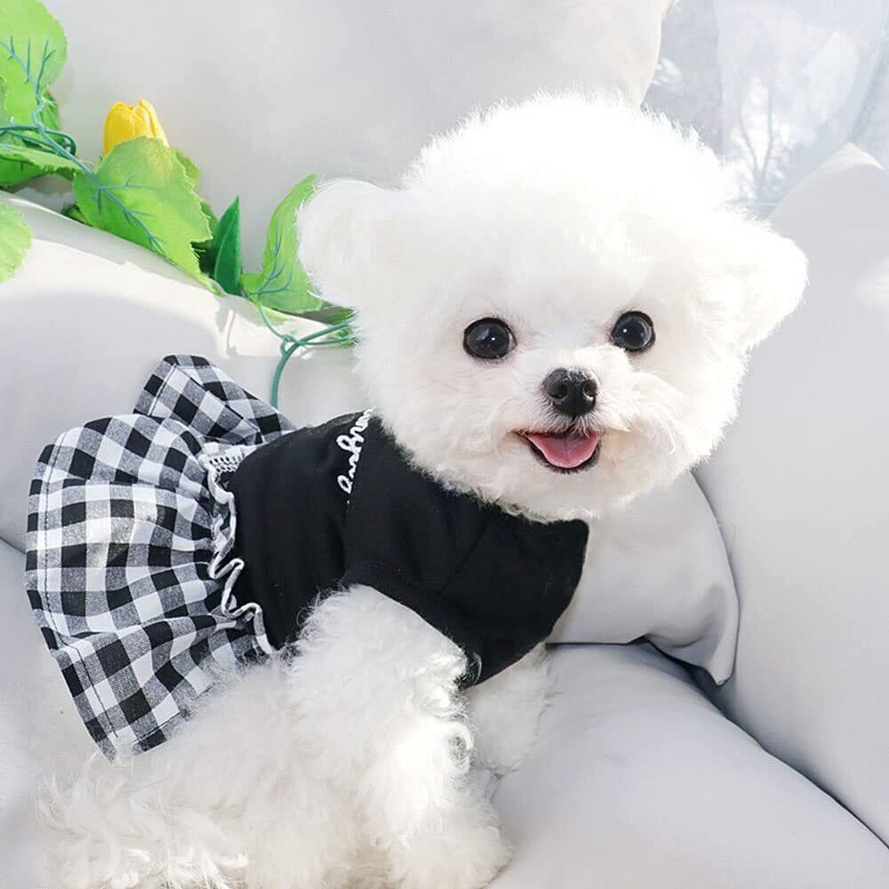 【可愛い】単色のTシャツ、とチェック柄の裾、おしゃれ なワンピース設計して、毎日一緒に生活する愛犬が自宅でも散歩中でも、外出先でもこんなオシャレな服を着せると、注目を浴びるアイテムに間違いなし。