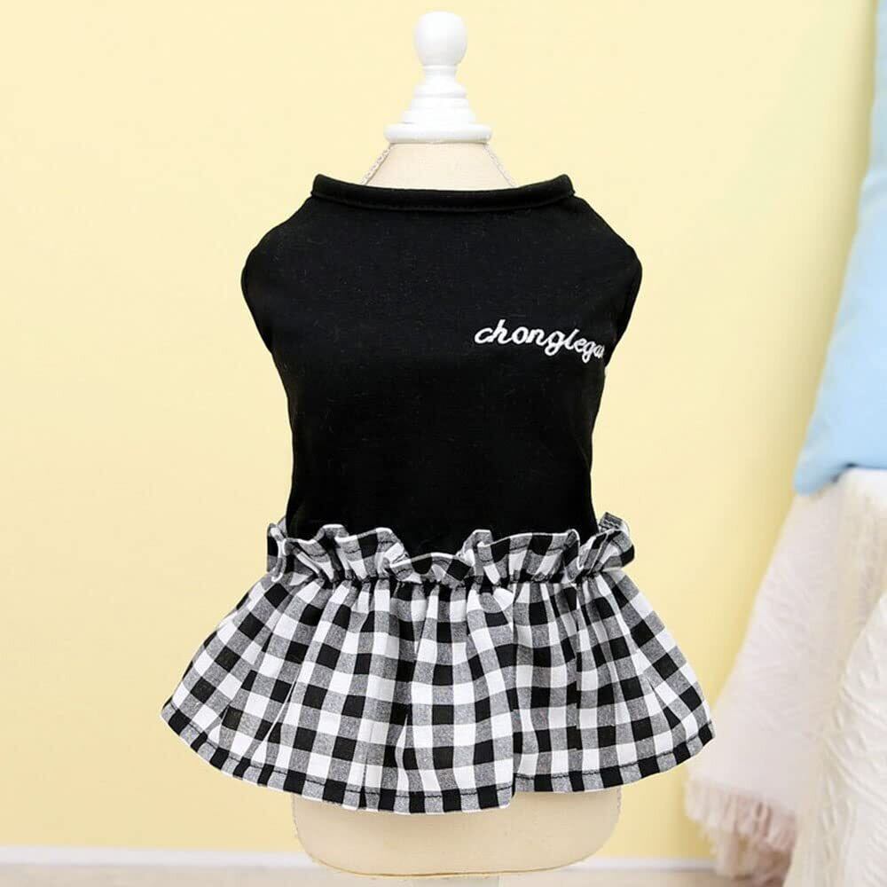 サムコス 犬服 ワンピース ペット服 犬猫洋服 チェック柄 蝶結び 袖なし 春夏秋 犬の服 お姫様 レース ドレス スカート 可愛いワンピース 人気 ファッション 小型犬 中型犬 猫 (L, ブラック)