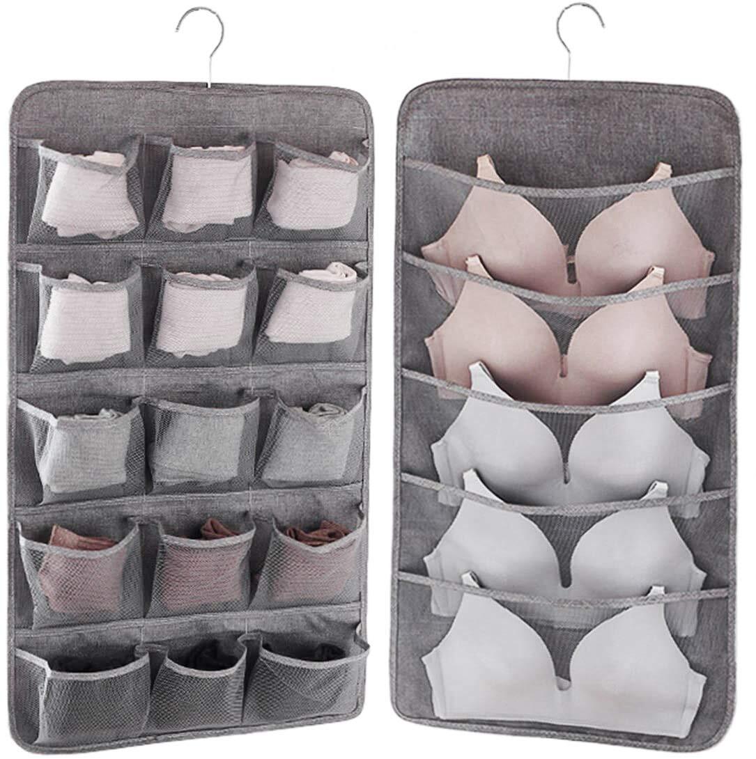Feifyw【1枚組】 下着収納 ウォールポケット吊り下げ収納 壁掛け 収納バッグ 衣類 下着 · 靴下 · パンツ · ブラジャー · ネクタイ 両面 ハンガー クリアポーチ 収納ラック オックスフォード生地(グレー)