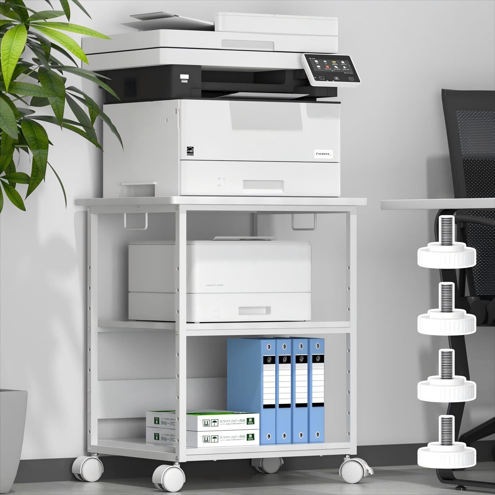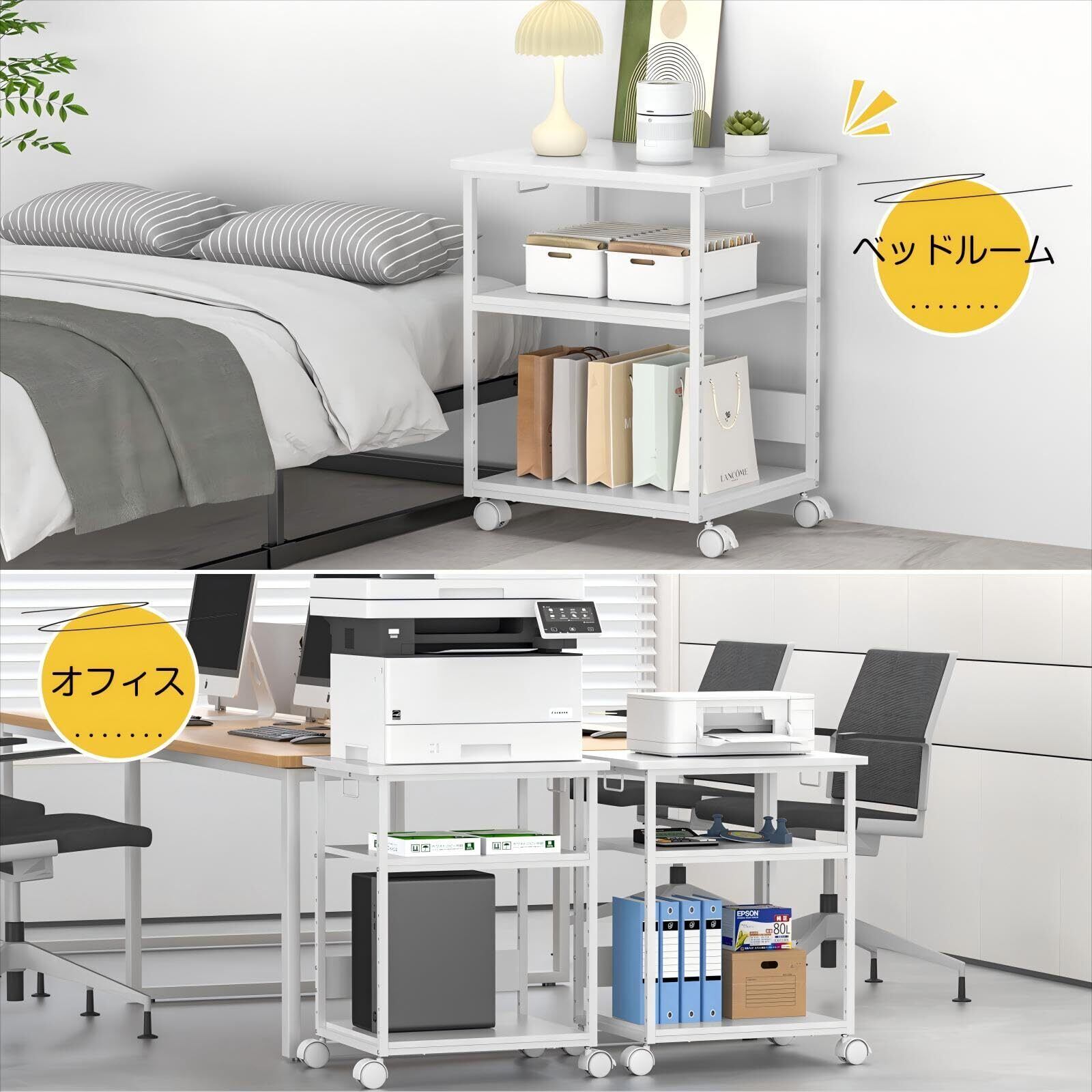 [W60*D50*H70cm]プリンター台 キャスター付き パソコンラック 中棚高さ9段階調節 両側取っ手付き pcワゴン オーディオラック デスク下 収納 棚 木製 袖机 スリム オフィス 収納 オフィスワゴン (ホワイト)
