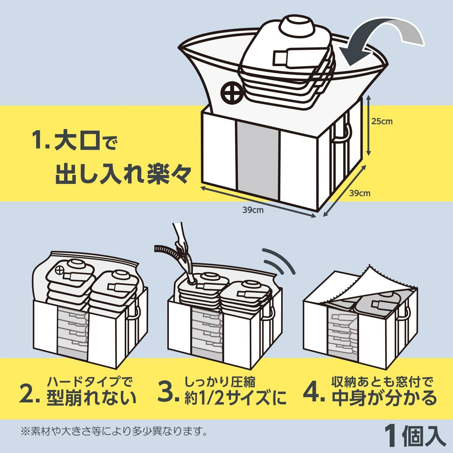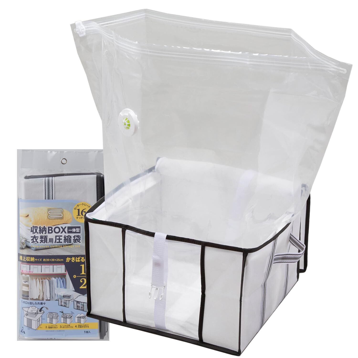 アール(R) 収納BOX一体型衣類用圧縮袋 収納ボックス 白 39×39×25(cm) 側面板 ハードタイプ 積み重ね 型崩れしない AH-001-Z