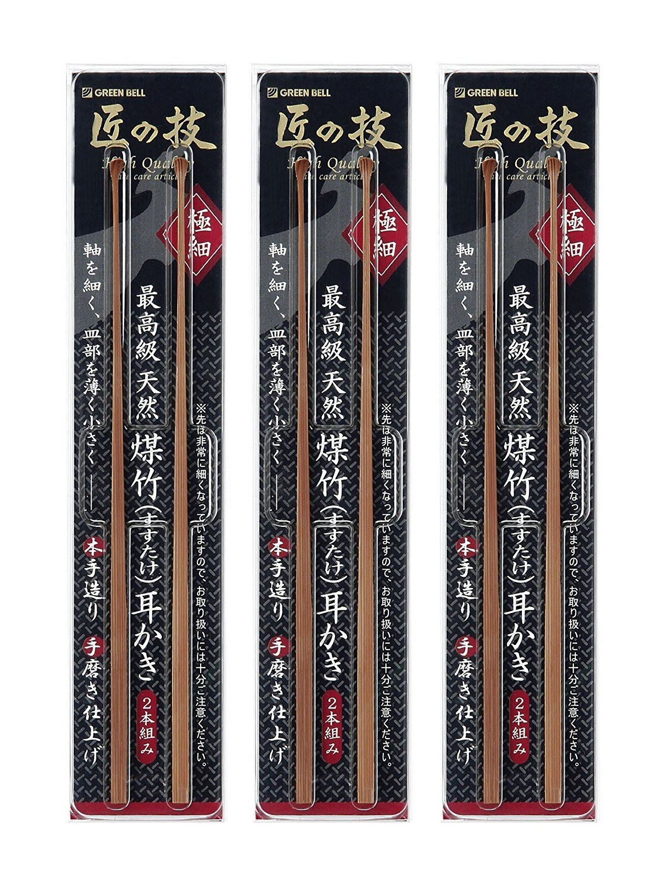 グリーンベル 匠の技 最高級天然煤竹(すすたけ) 耳かき 2本組み G-2153 3個セット