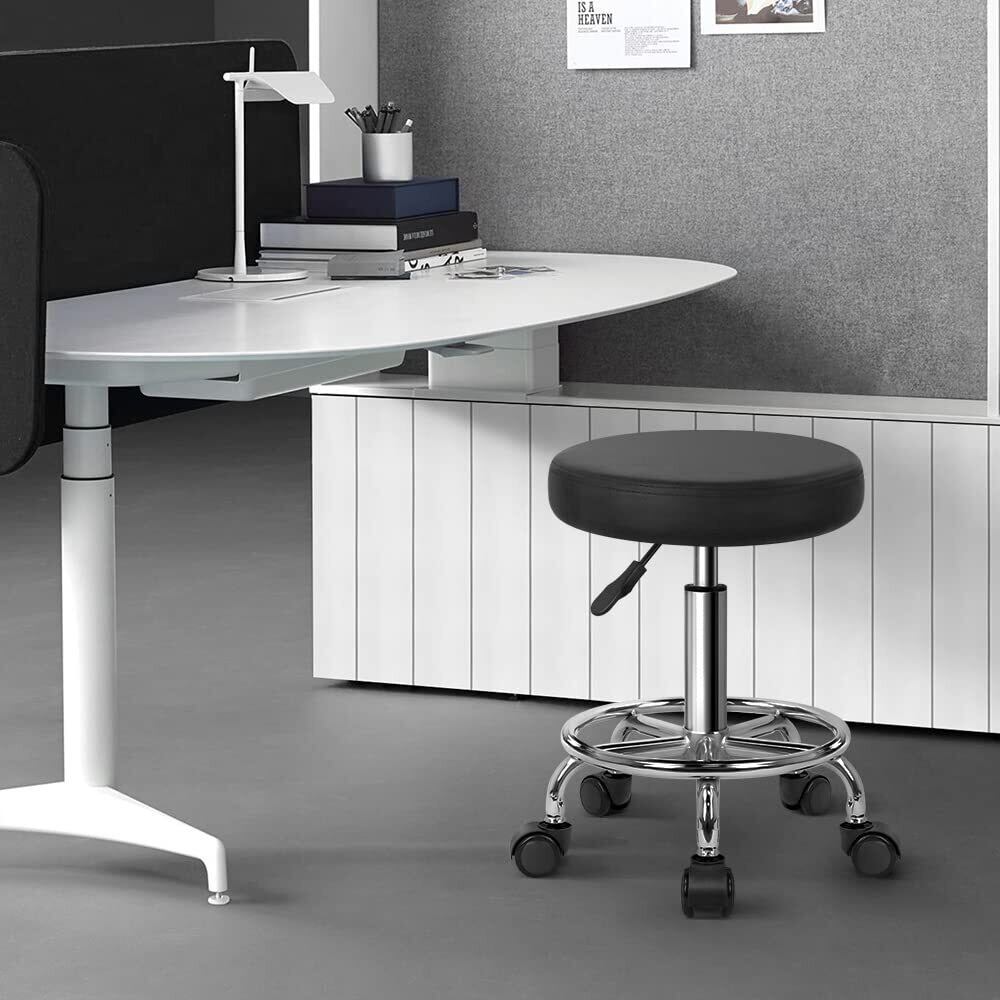 KKTONER 全5色 丸スツール キャスター付き 昇降スツール PUレザー 回転椅子 バーカウンターキッチンチェア製図作業椅子 デスクチェア ブラック Mサイズ (黒)