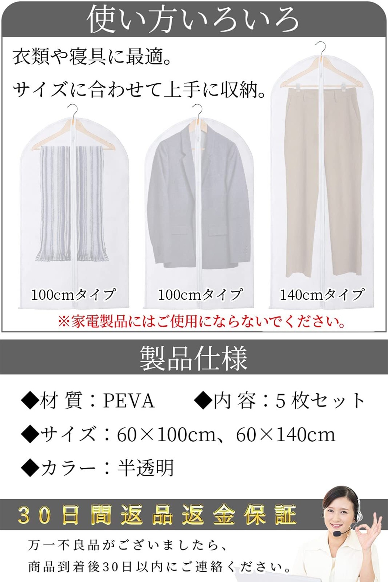 洋服カバー 衣類カバー 防虫防カビ ロング 透明 半透明 ショート ビニール JOIEM (60×100cm 5枚)