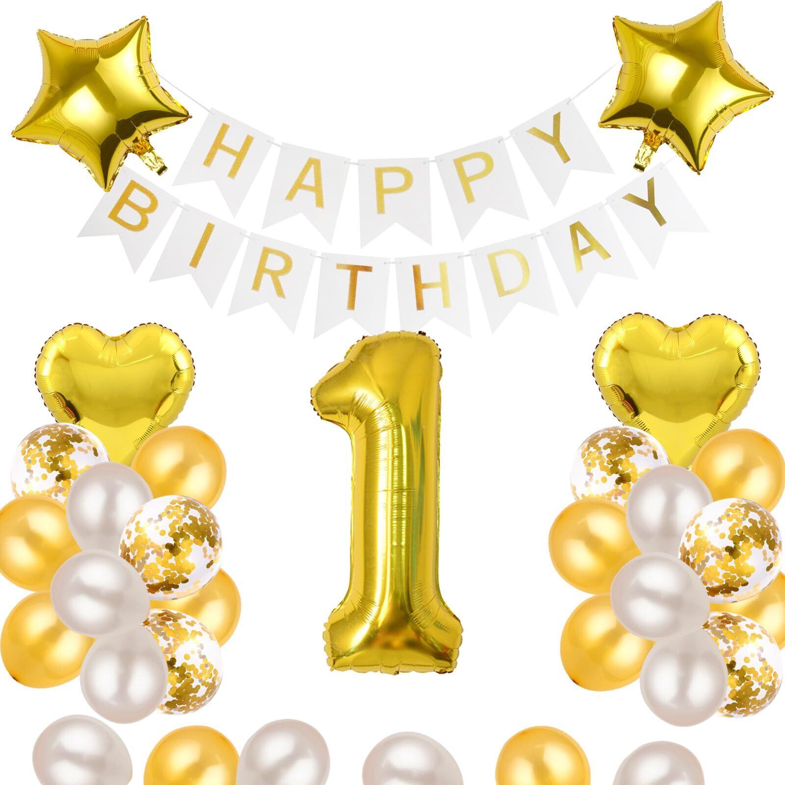 1歳 誕生日 バルーン 風船 飾り付け セット 数字バルーン 1 HAPPY BIRTHDAYガーランド ハート風船 紙吹雪風船 バースデーバルーン 大人 男の子 女の子 ゴールド