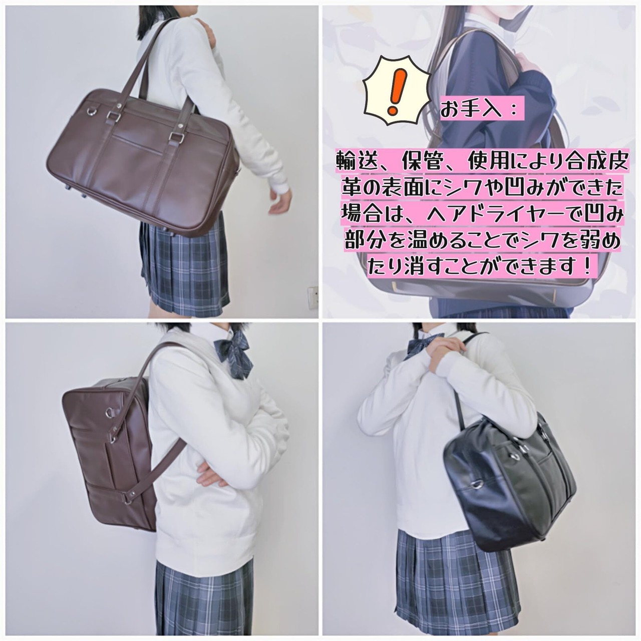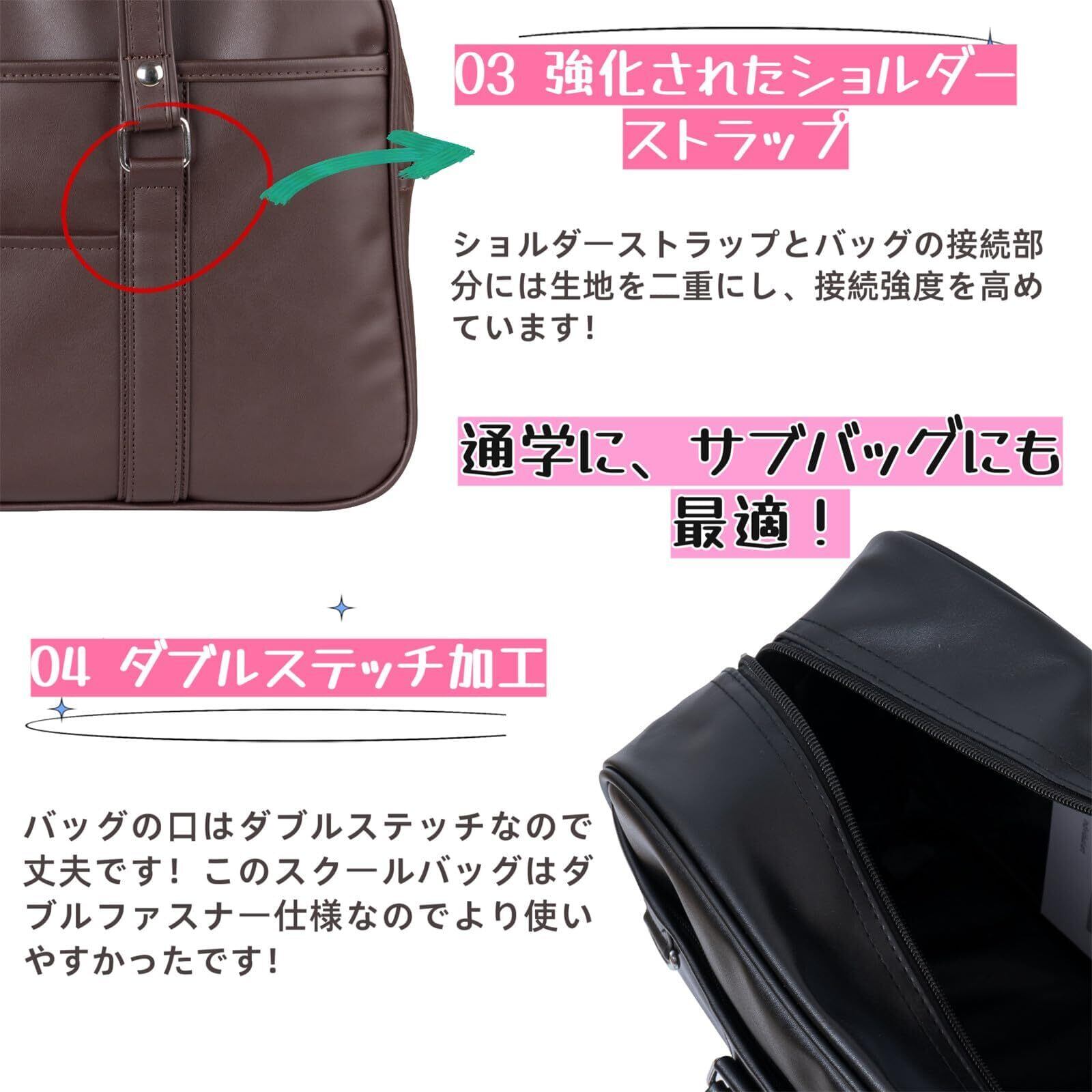 [YOBLUELO] スクールバッグ 革 スクバ 合皮 女子 高校生 大容量 肩紐長い イヤホンマークなし 茶色 黒 背負える
