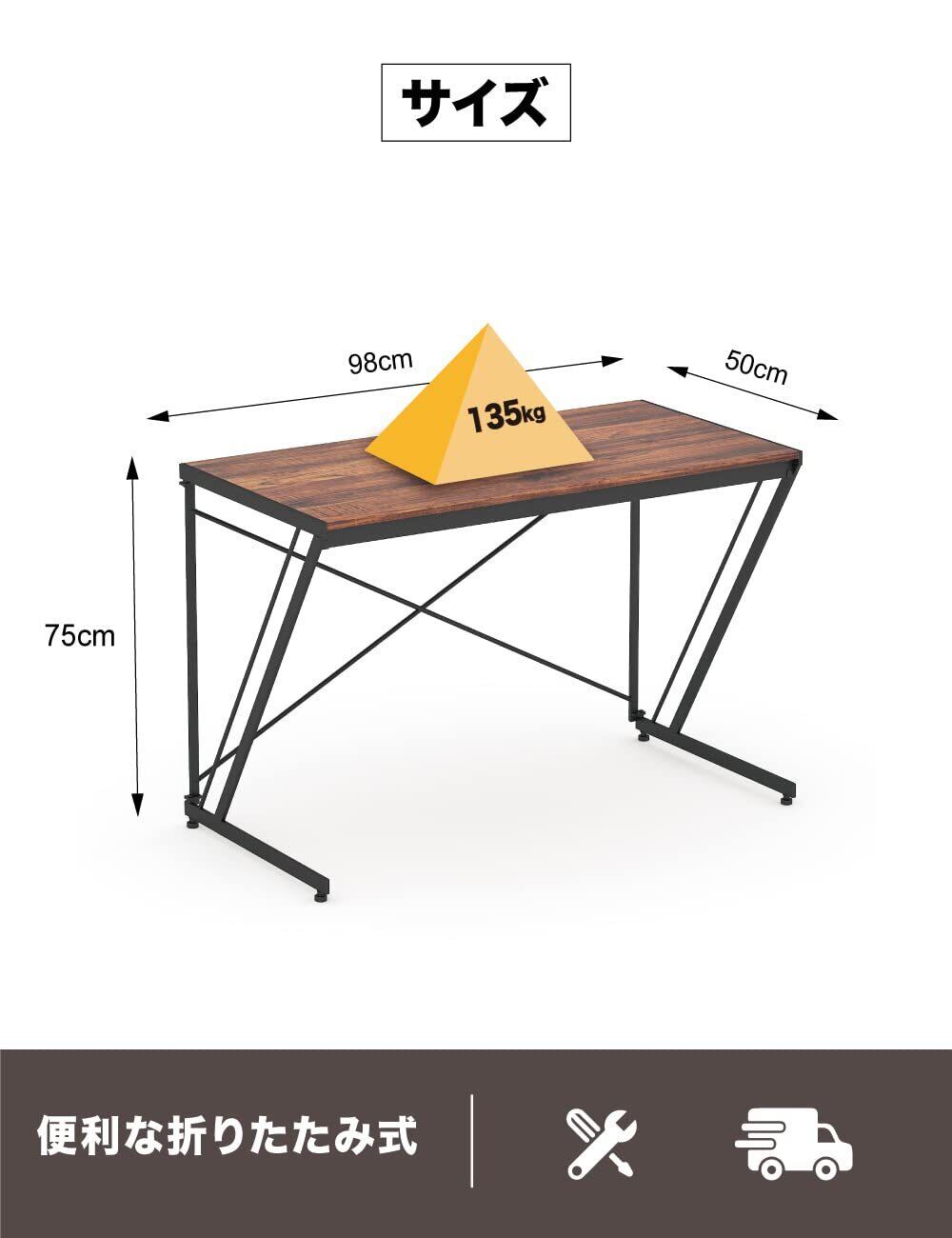 オフィスワークテーブル デスク オフィスワークデスク リモートワークテーブル 幅100cm×奥行50cm z型 机 在宅勤務 折りたたみ パソコンデスクワークデスク 組立簡単 アジャスター付き シンプルデスク 作業台