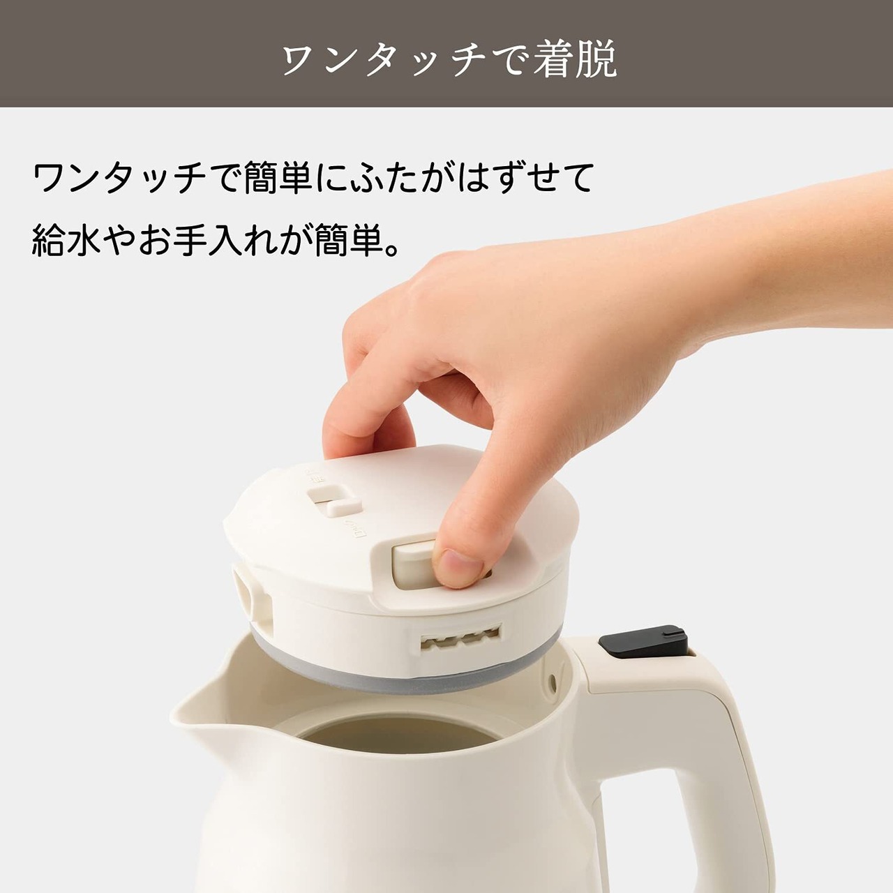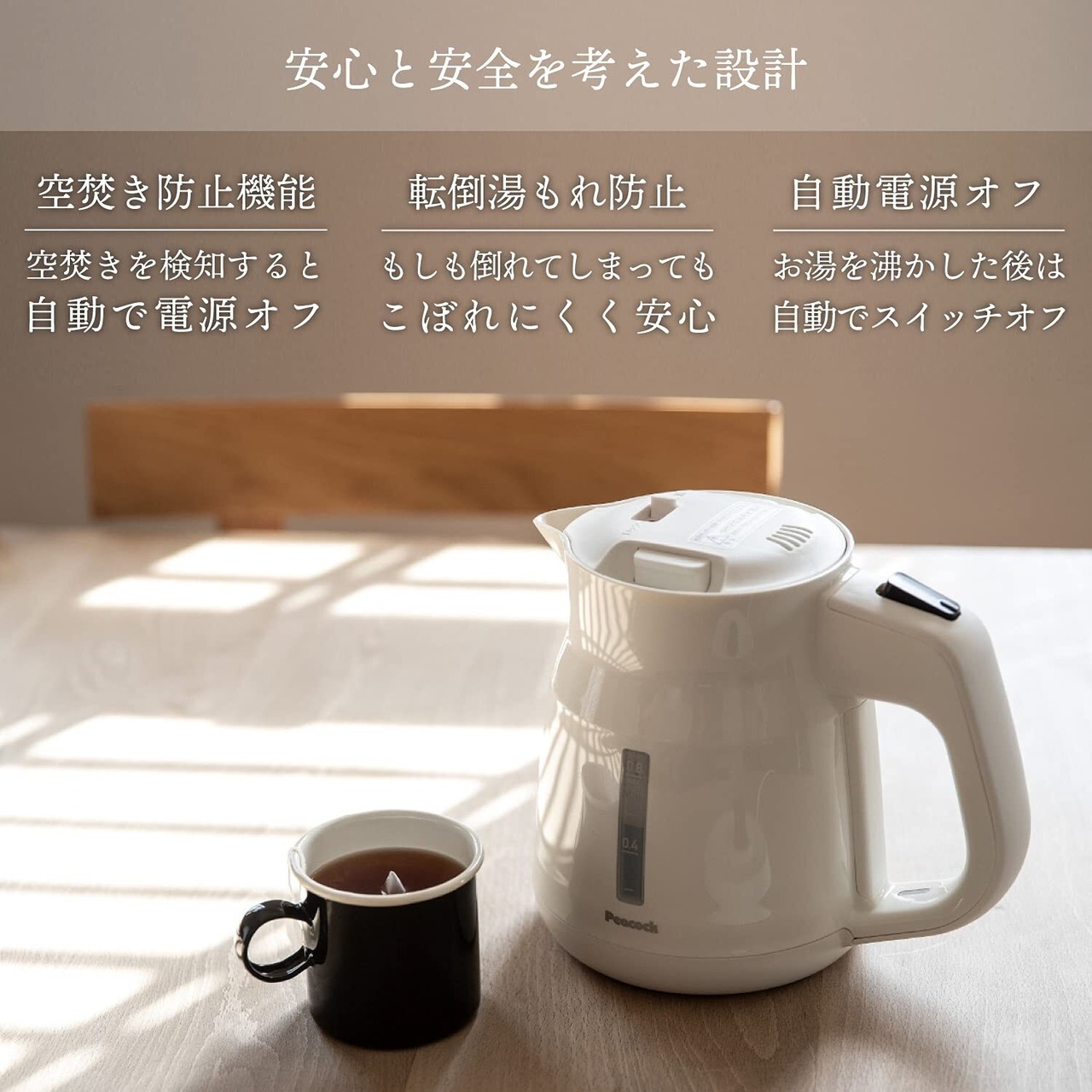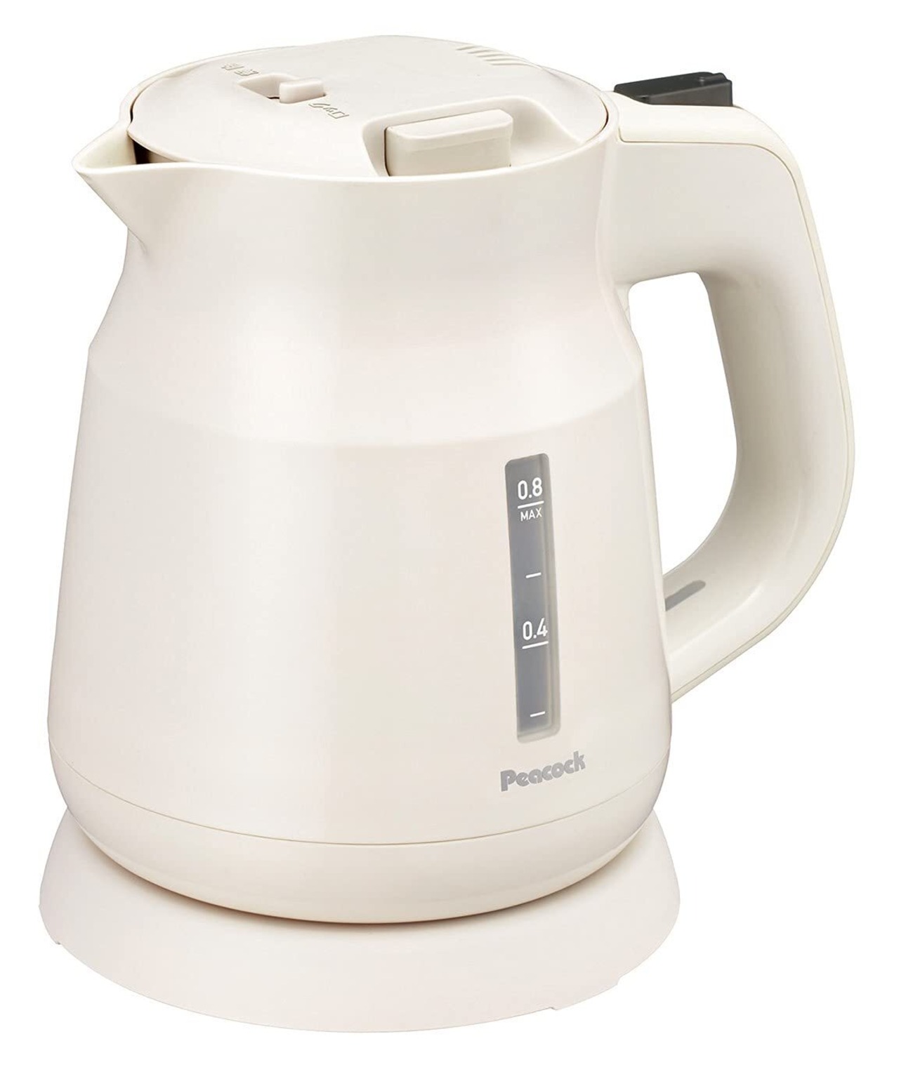 ピーコック 電気ケトル 0.8L 湯沸かし 1200W 転倒湯漏れ防止 ホワイト WEK-08