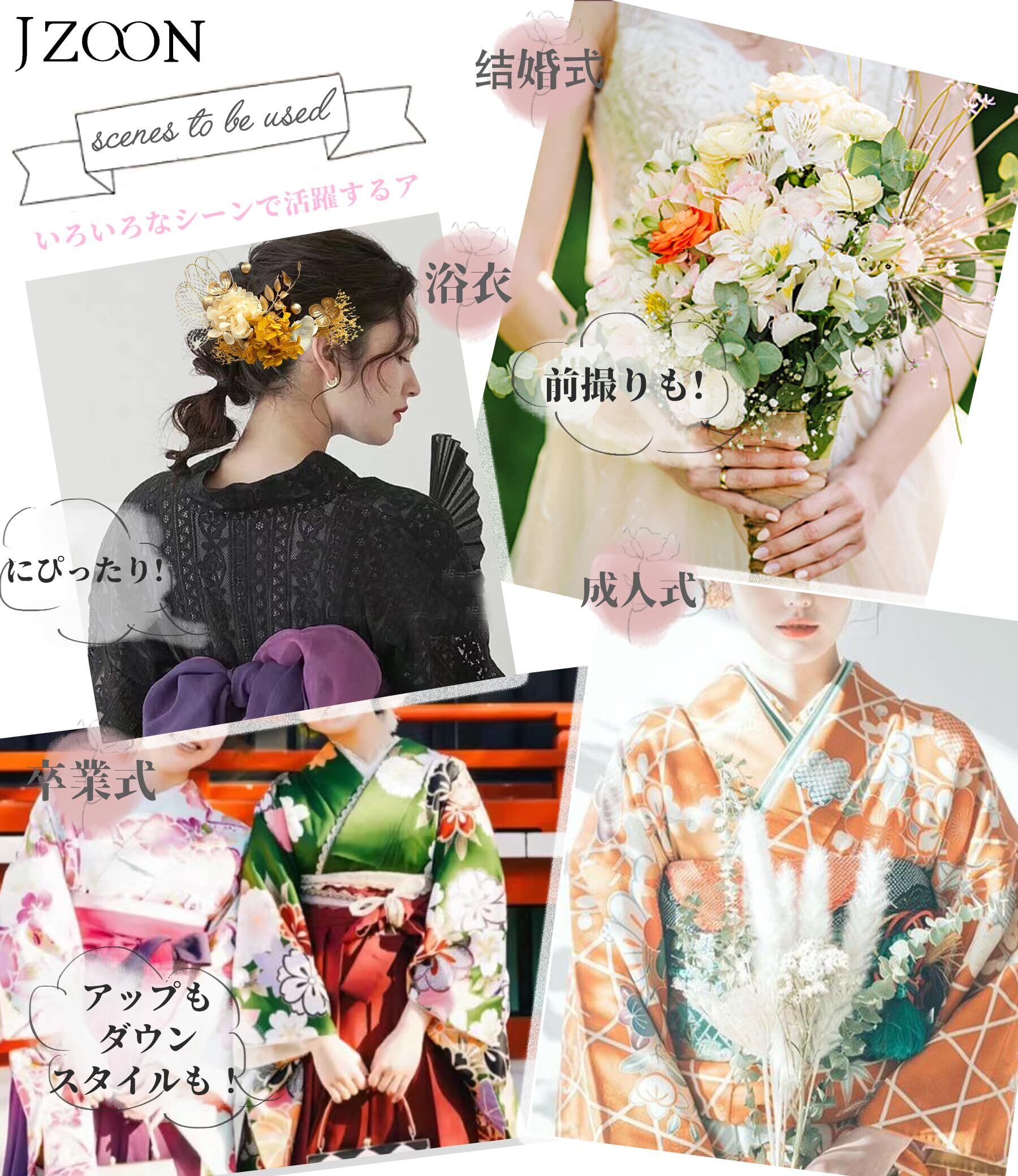 ❀JZOONデザイナーが設計したオリジナル髪飾りセット、成人式、卒業式、振袖、袴など和装小物を自由に組み合わせられる。