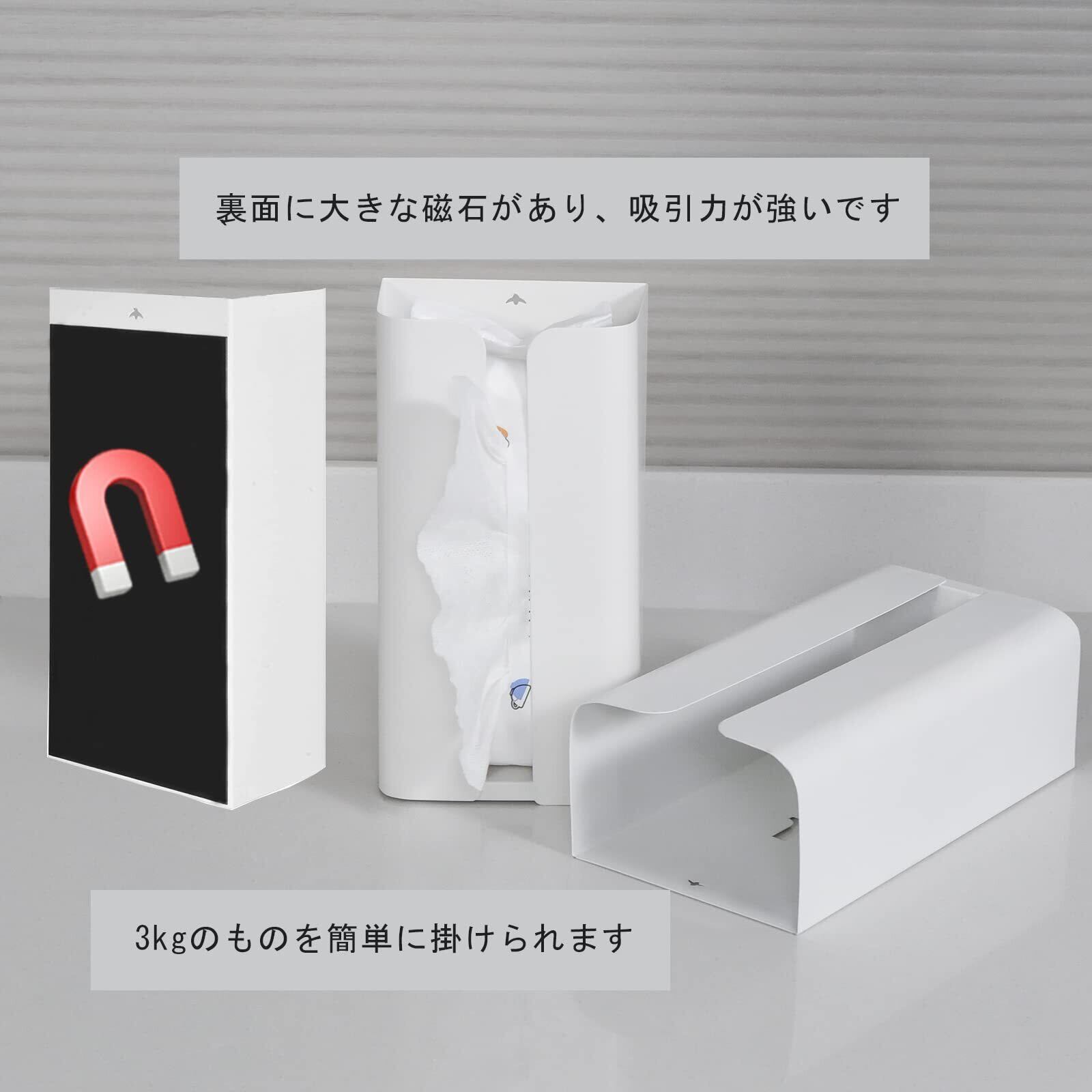 Wowfill マグネット ティッシュケース ペーパーホルダー 長方形 片手で切れる キッチン 浴室 お風呂 洗面台 収納(白)