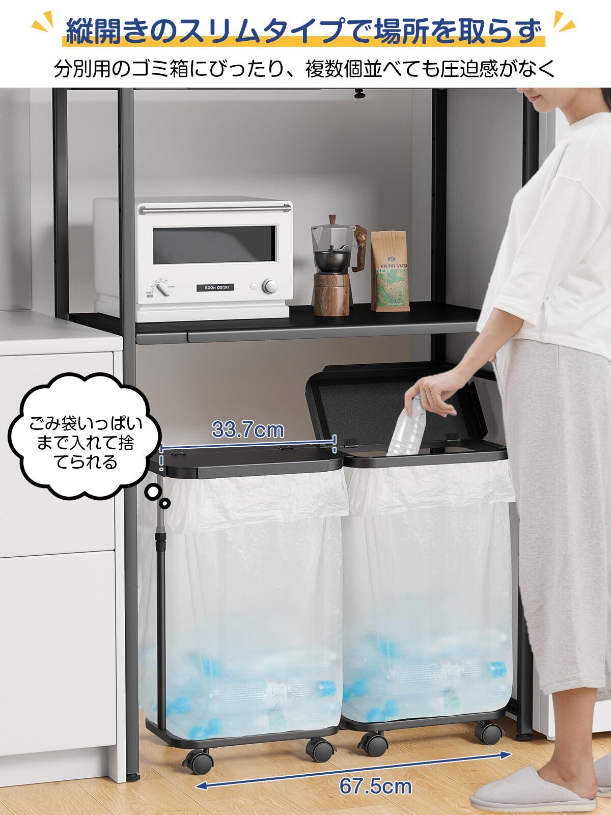 TTWO ゴミ袋ホルダー フタ付き 横開き 高さ調整W33.5×D22.5×H(47.5~81)cm ゴミ袋スタンド スリム 20L~90L対応 大容量 分別ゴミ袋ホルダー ワイドな開口 フレームゴミ箱 ダストスタンド レジ袋 ポリ袋ホルダー リサイクルスタンド 塵箱 ビニール袋 おしゃれ 簡易ゴミ箱 袋かけるだけ 取り換え簡単 キャスター・アジャスター付き (2個-ブラック)