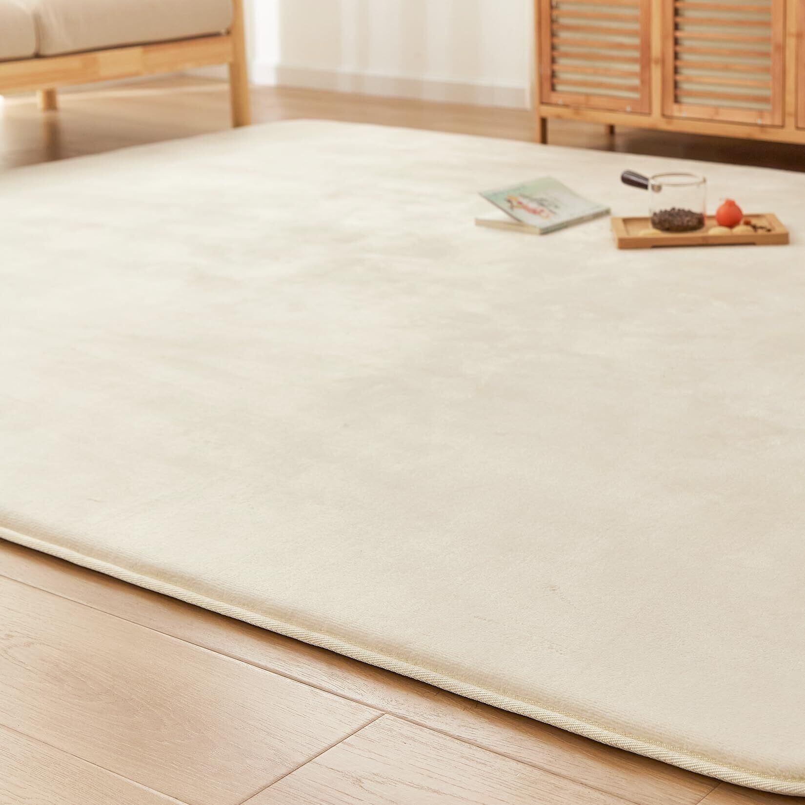 【短い毛足で簡単に掃除】カーペットの表面生地にはフランネル素材を使用し、繊細な毛先でやわらかく、滑らかな手触りを実現しました。短めの毛足でゴミが絡みにくく、一年中快適にお過ごしいただけます。