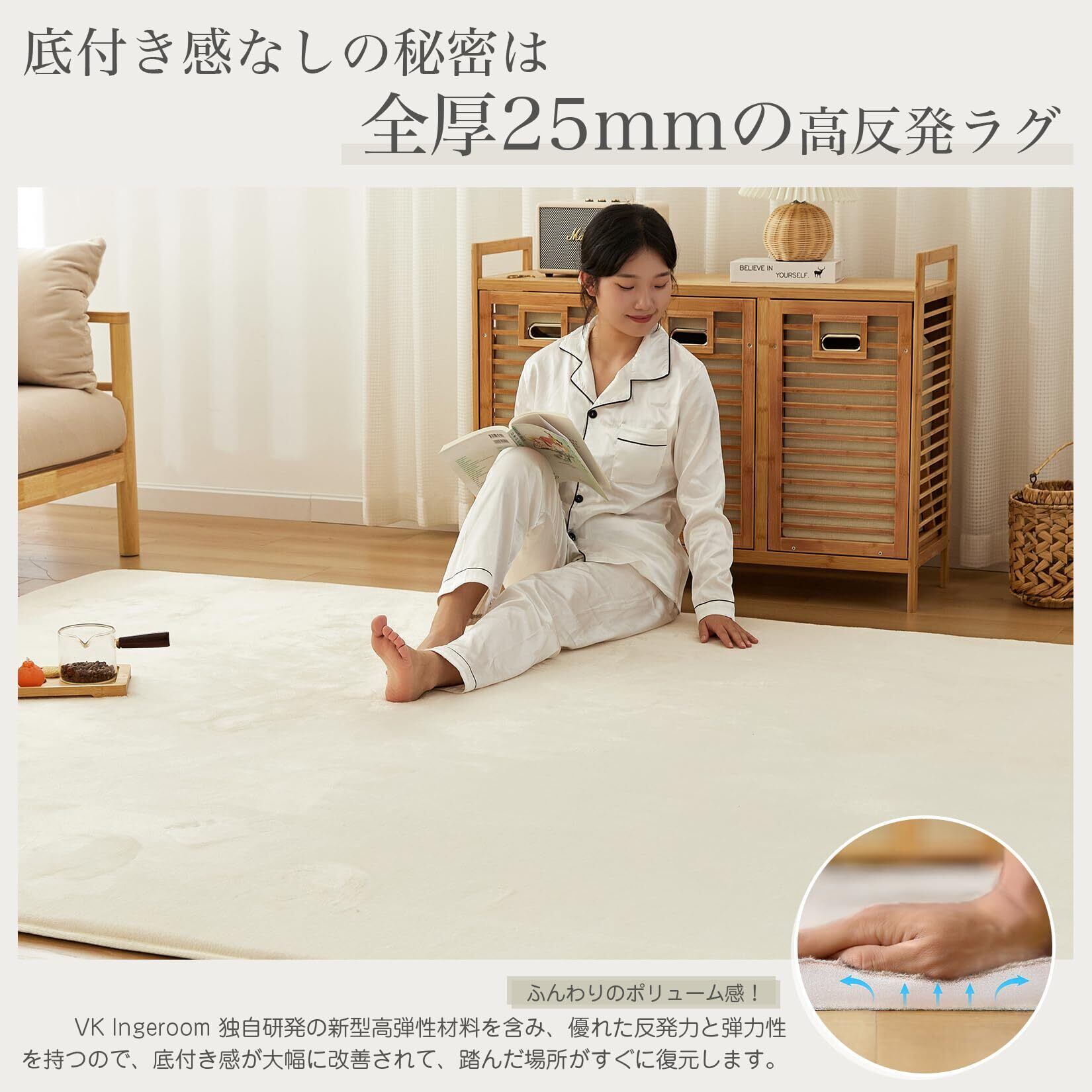 VK Ingeroom カーペット ラグ 極厚25mm 厚手 ラグマット 防音 滑り止め付 抗菌 防臭 防ダニ 低ホルム ふわっと手触り高反発 床暖房ホットカーペット対応 約1.5畳 冬用 北欧 おしゃれ こたつ敷きマット 130×185cm アイボリー