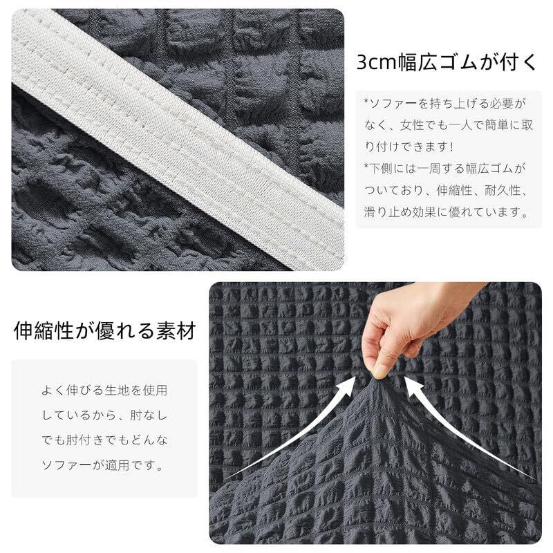 一人でも簡単に取り付け:下側には一周する幅広ゴムがついており、伸縮性、耐久性、滑り止め効果に優れています。背面両側にはラベルが付いていて、取付時に前後の向きを簡単に確認できます。ソファを持ち上げる必要がないので、女性一人でも簡単に取り付けが可能です!簡単に取り外して洗えるので、ソファをいつも清潔に保てます。