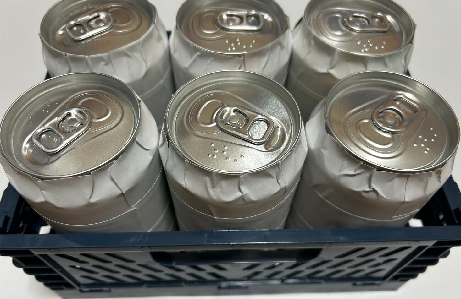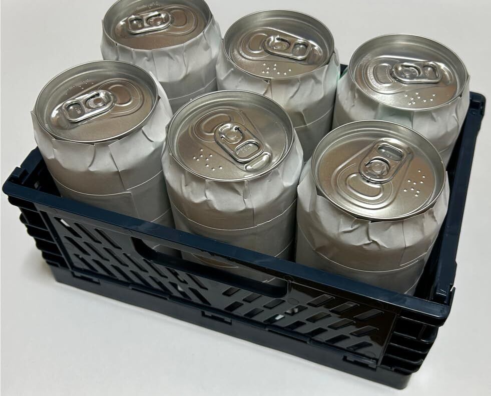 積み重ねがとてもコンパクト、折りたたみ式で簡単にコンテナが出来上がります。350ml缶が6缶入ります。