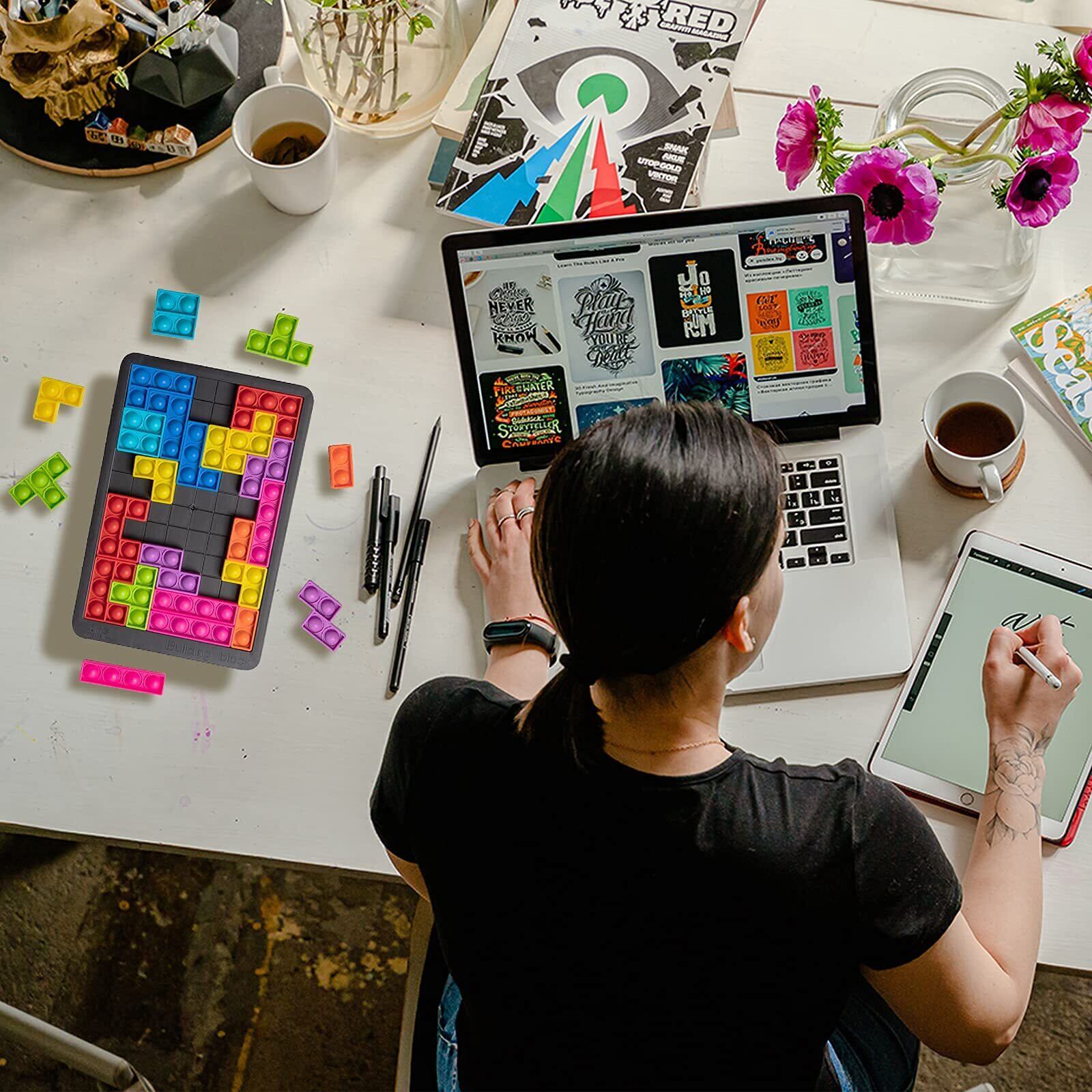 「革新的なデザイン」:ジグソーおもちゃは、モダンゲームとクラシックゲームを完璧に組み合わせたバブルフィジェットおもちゃのセットです。テトリスはシンプルでしたが、魅力的で、創造性を発揮し、パズルを先取りする必要がありました。