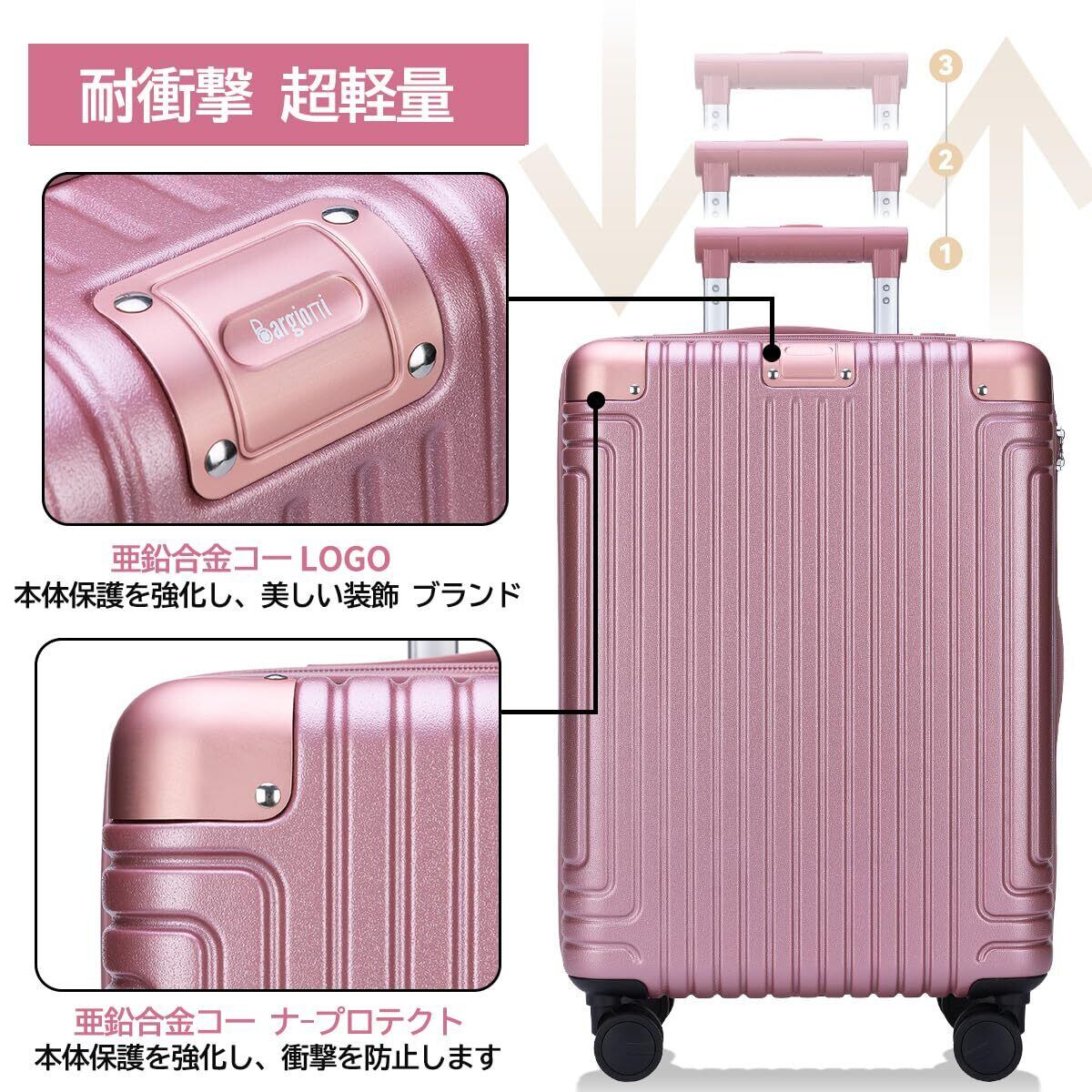 [Bargiotti] スーツケース 機内持ち込み ABS+PC キャリーケース 耐衝撃 静音 軽量 キャリーバッグ 日乃本キャスター USBポート付き YKKファスナー(シャンパンゴールド, Sサイズ, 40L容量)