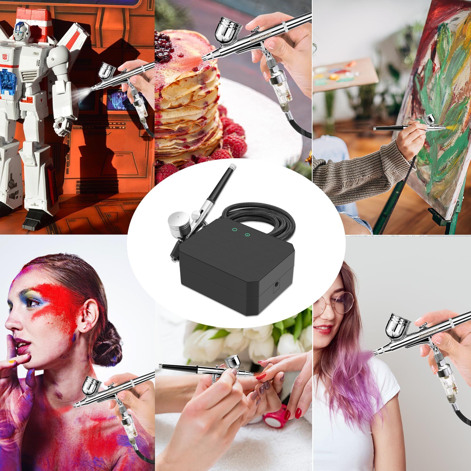Gocheer【2024年新型】48PSI エアブラシ コンプレッサー ミニ エアブラシ セット 3段階圧力制御 ダブルアクション 多機能 エアーブラシ ダブルアクション ク エアブラシキットとの塗料 塗装 絵画 DIY 日本語説明書 黑