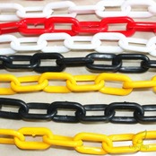 用途に合わせてカラーが選べるプラスチックチェーン。黒・赤・白・黄色・黄色×黒・赤×白の6色展開です。