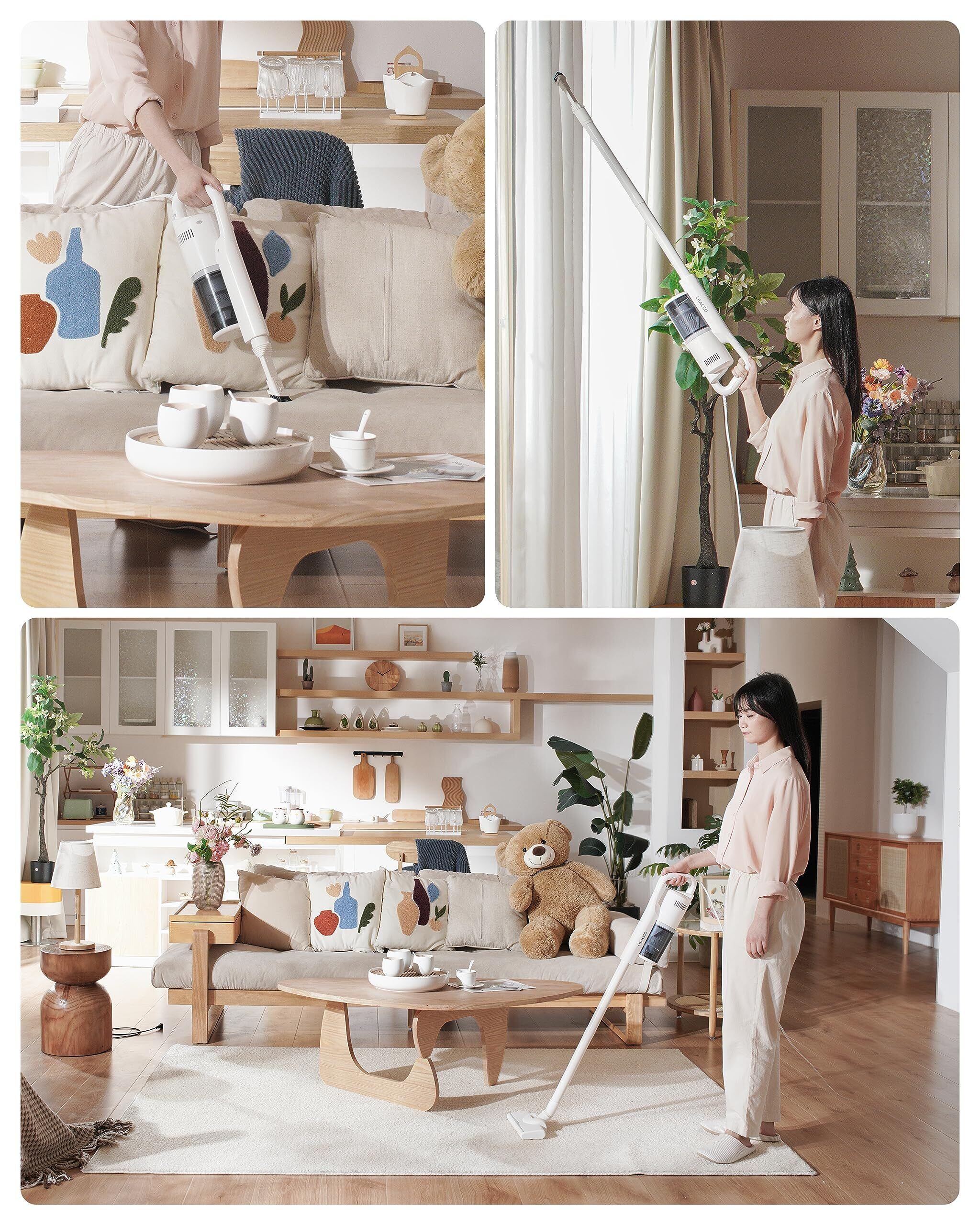 ✨【2WAY式掃除機】床、階段、ソファー、ベッド、壁と家具の隙間、天井などの高いところ、すきまノズルを利用して、ハンディクリーナーとして広い部屋でも扱いやすくて手軽に掃除できます。約1.55kgのデザインで女性にしても片手で気軽に操作できます。パイプを利用して、お手で届きにくい場所や家具の下の狭い場所も楽にお掃除できます。