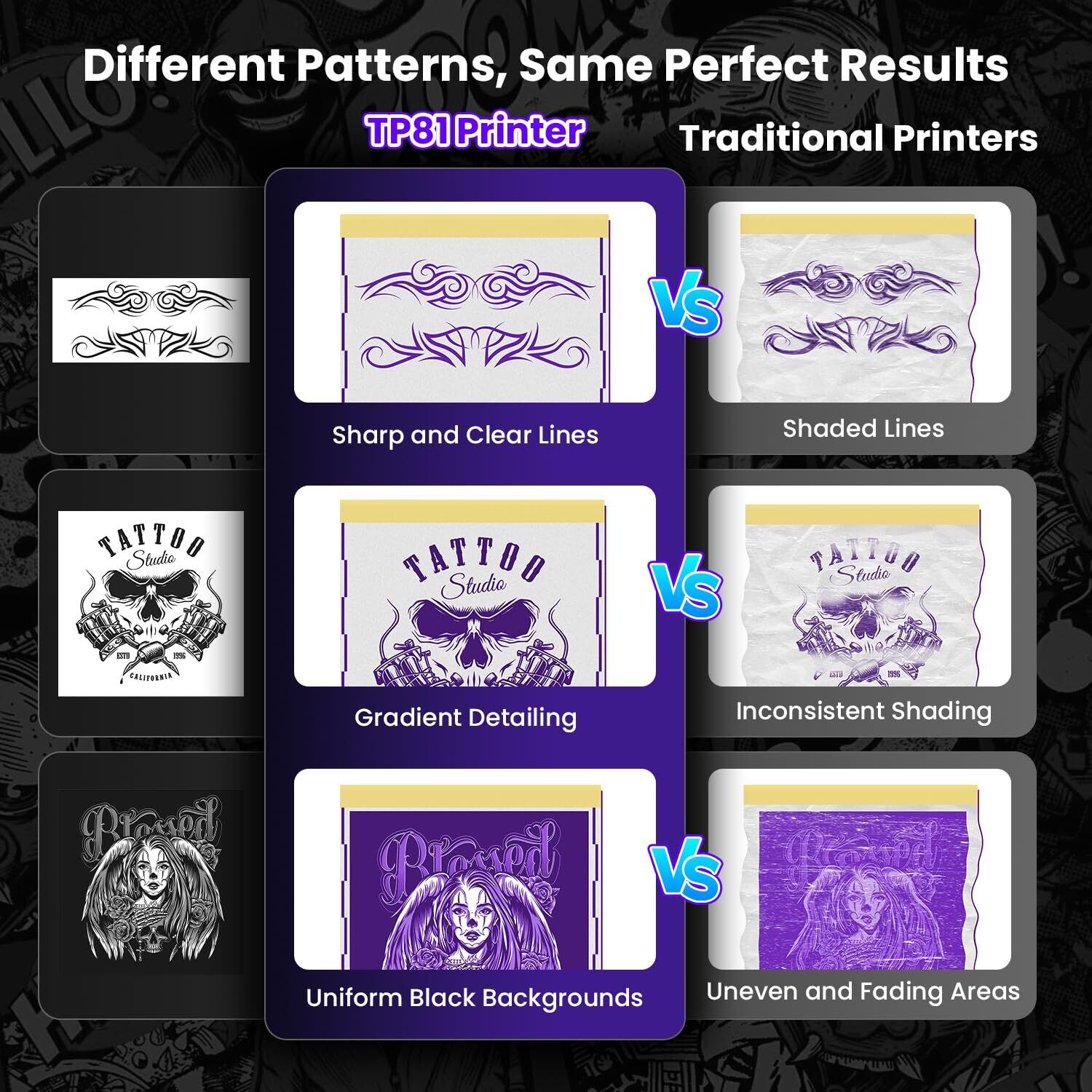 比類のないタトゥーアートを解き放つ: Phomemo TP81モバイルプリンターは、高度なサーマルプリンティング技術と新特許のアンチリンクルラインにより、シャープで正確なパターンとラインの高品質プリントを実現します。あなたのタトゥー作品は際立ち、そのユニークさで魅了することでしょう。インク詰まりやクリーニングの煩わしさから解放され、プロレベルのタトゥーアート制作に専念できます。