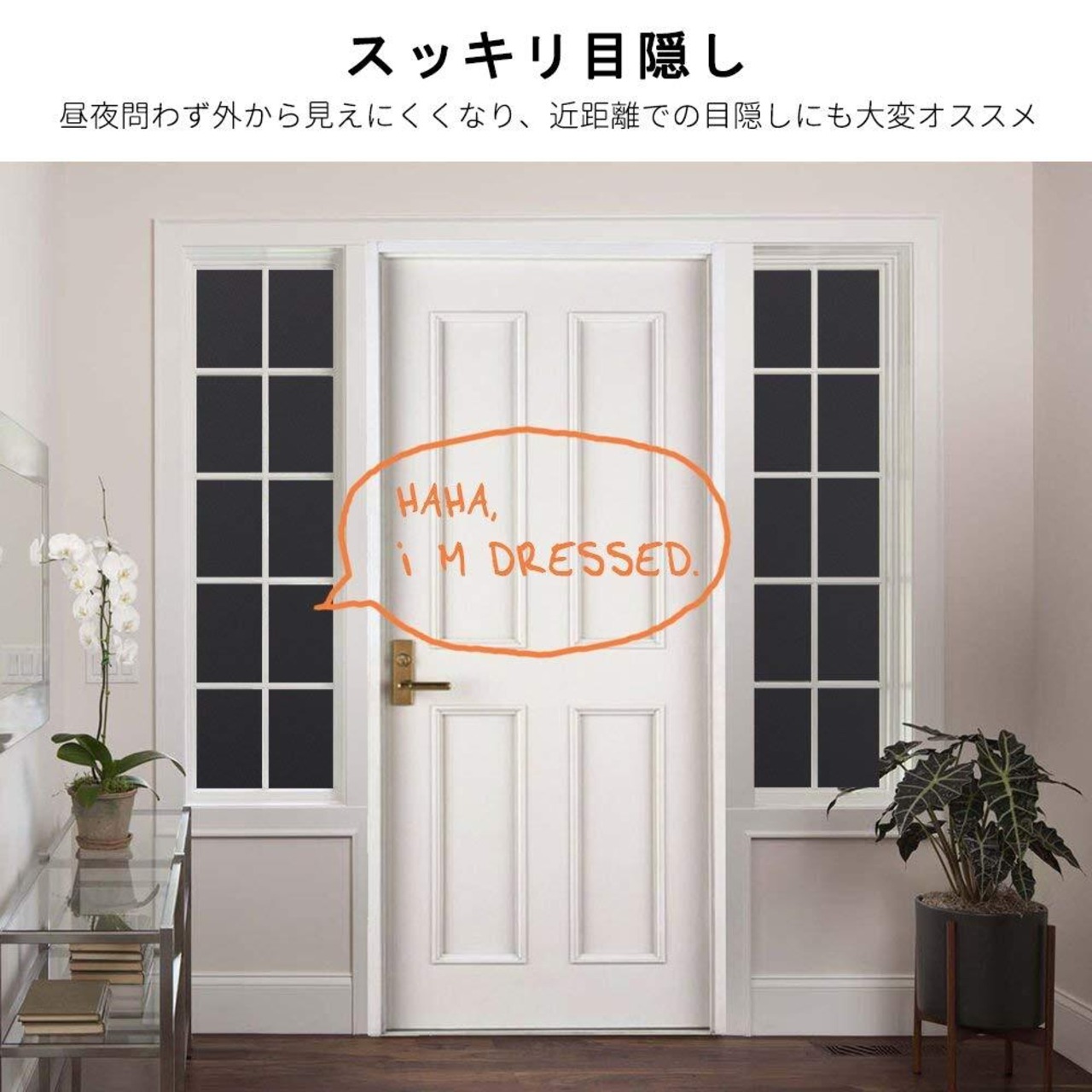 伝言板・リメイク可能:キレイめがお好きなお客様にもオススメ!この真っ黒で98%不透明のフィルムは遮光性、目隠し効果が抜群な代わりに、見た目がやや地味ですが、上にチョークで絵や文字を描いたりできるので、伝言板として使えるだけではなく、ご自由にリメイクできます。