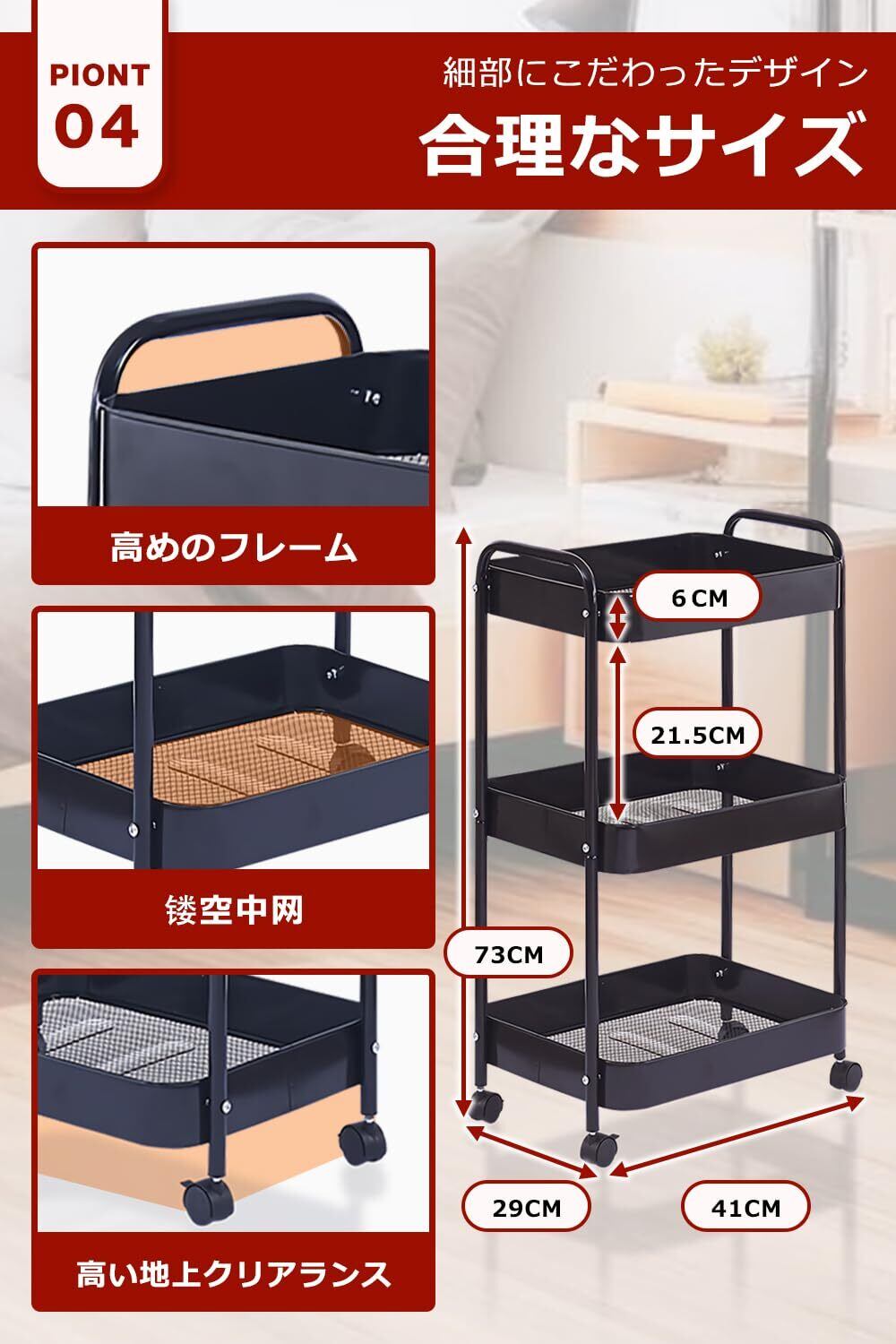 キッチンラック キッチンワゴン キャスター付き 【オール合金構造 】 スリム ワゴン 小物隙間収納 ペットボトルラック 冷蔵庫横 洗面所 収納 隙間ラック 3段 4段 スリムワゴン 細い棚 調味料棚 防錆 (ブラック, 3層)