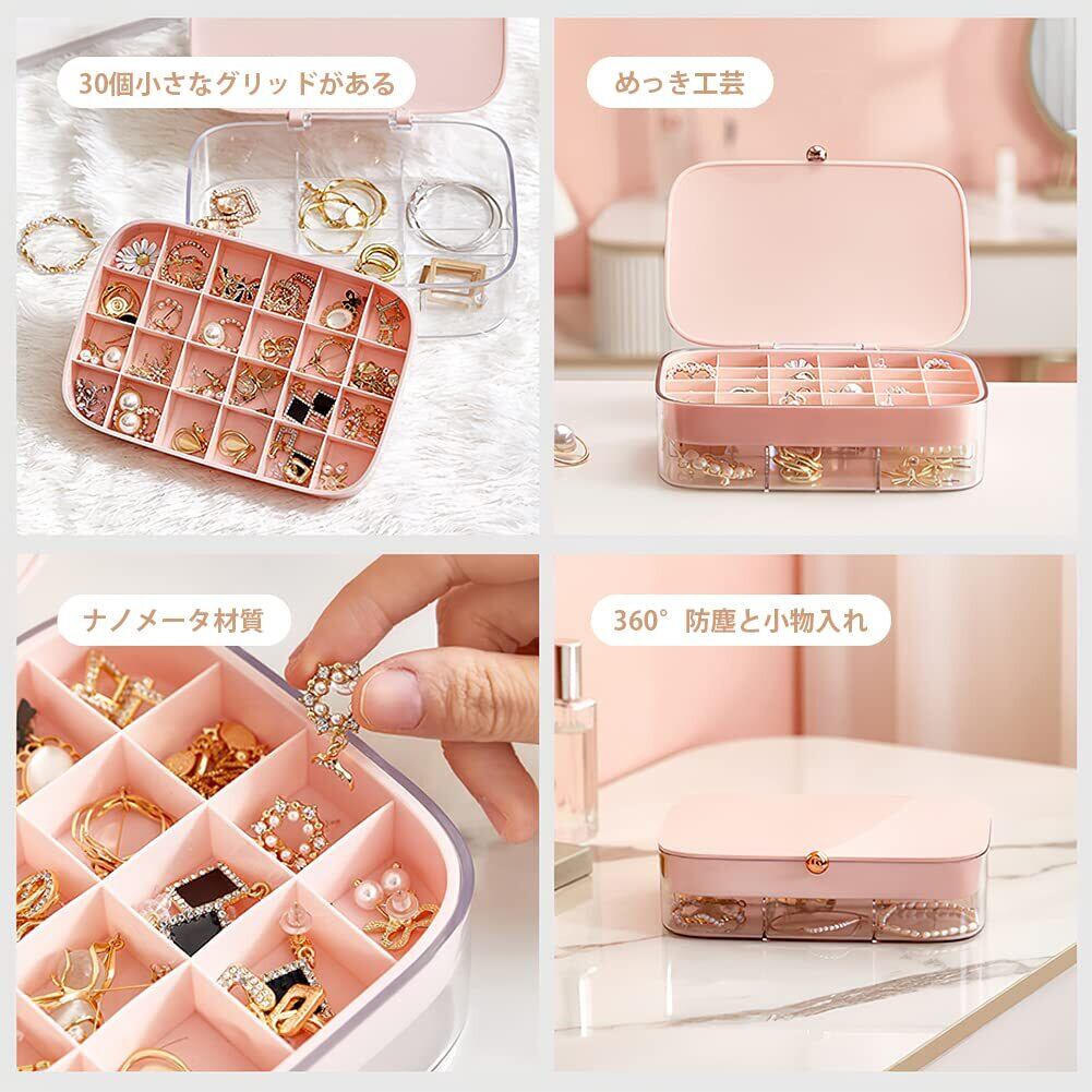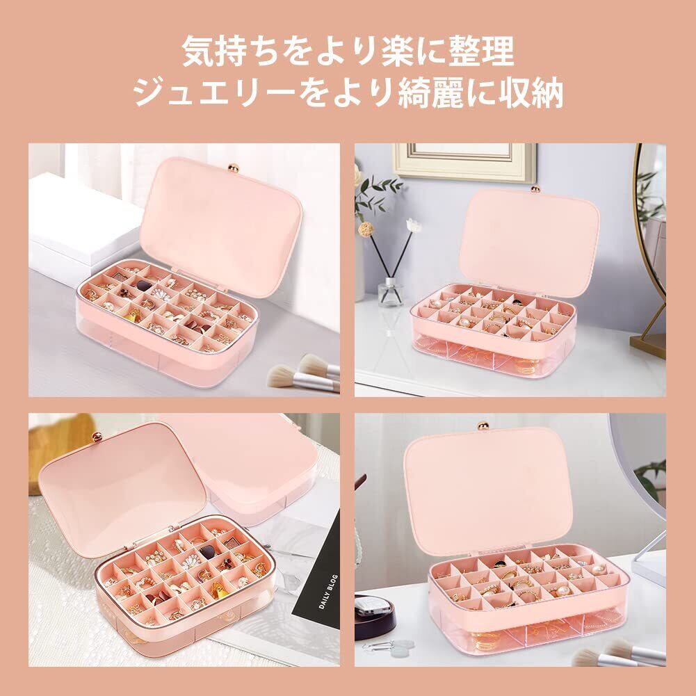 ジュエリーボックス 大容量 二層 ピアス収納 指輪ケース コンパクト 携帯用 小物入れ 仕切り調節 ジュエリーケース アクセサリーケース アクセサリー収納 アクセサリーボックス 宝物箱 プレゼント ギフト贈り物 レディース 女の子 女性(ピンク)