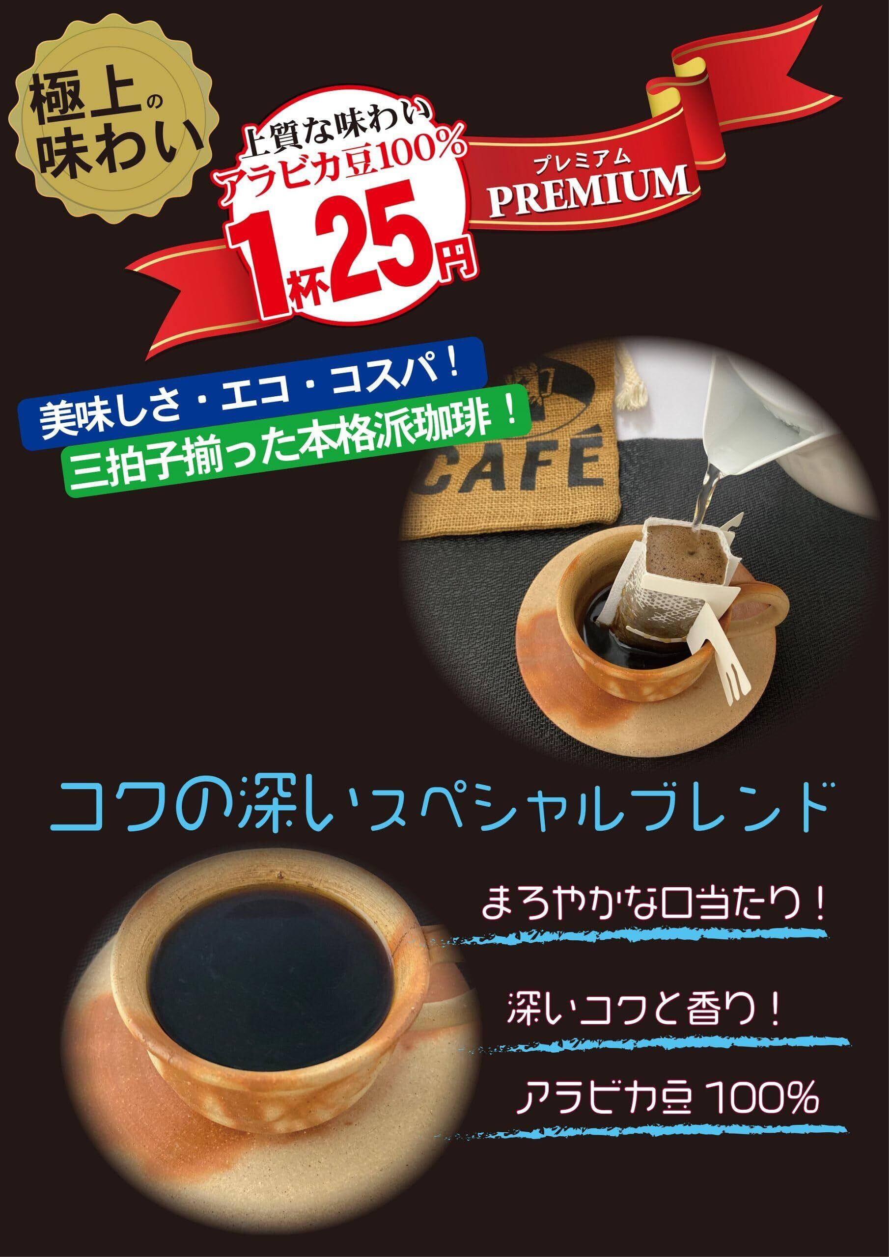 プレミアムコーヒー豆使用、個包装を省いたドリップコーヒー